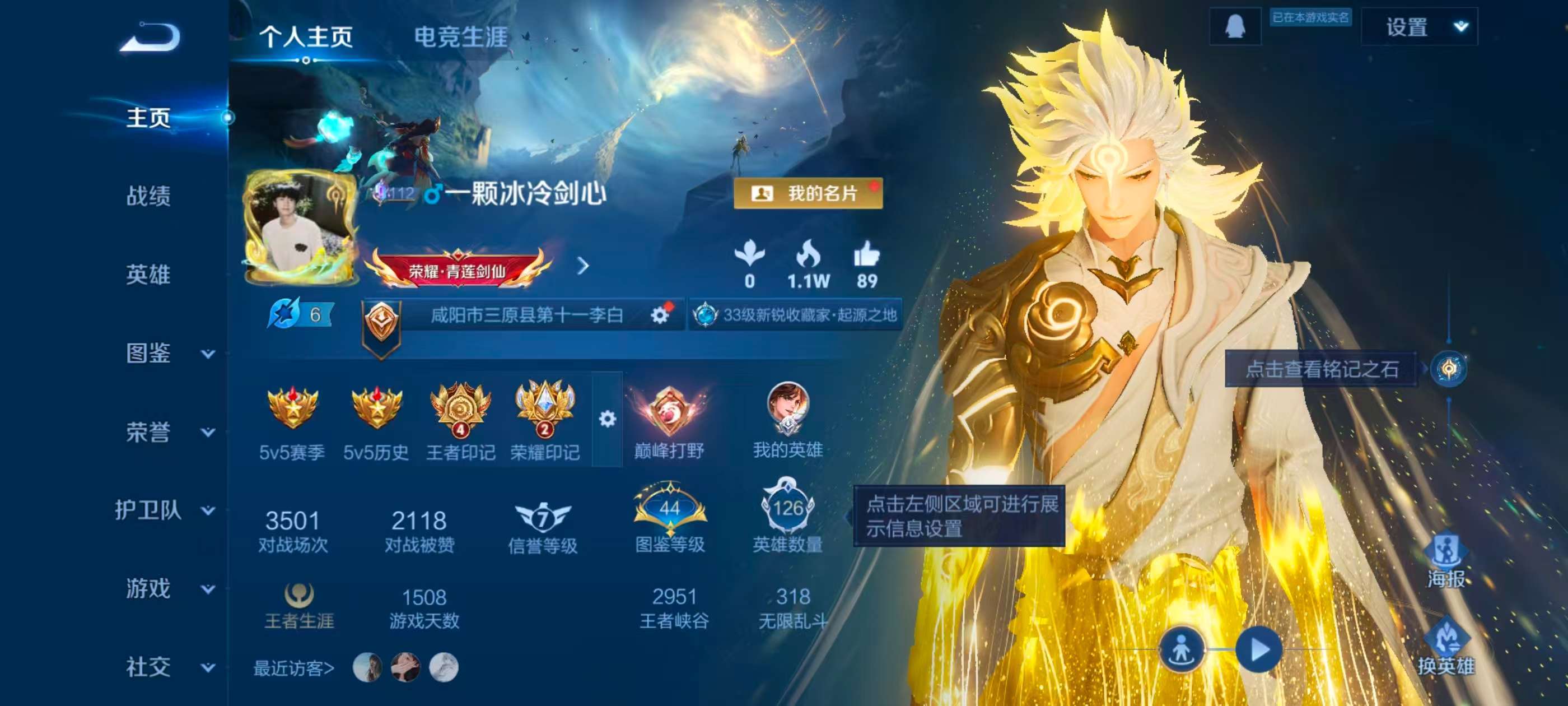 安卓QQ/荣耀王者/167皮肤/124英雄/1典藏/0珍品无双/3无双/0珍品传说/8传说/47史诗
