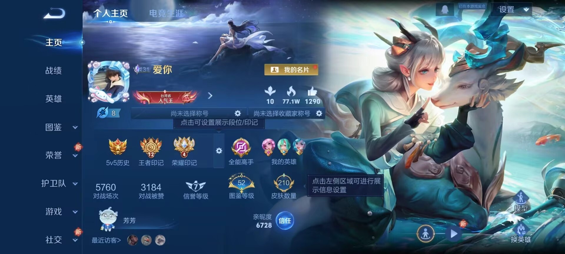安卓QQ/荣耀王者/210皮肤/123英雄/1典藏/0珍品无双/1无双/5珍品传说/12传说/61史