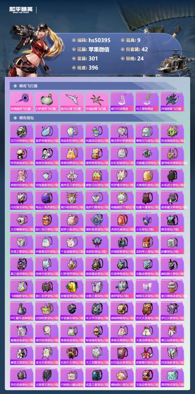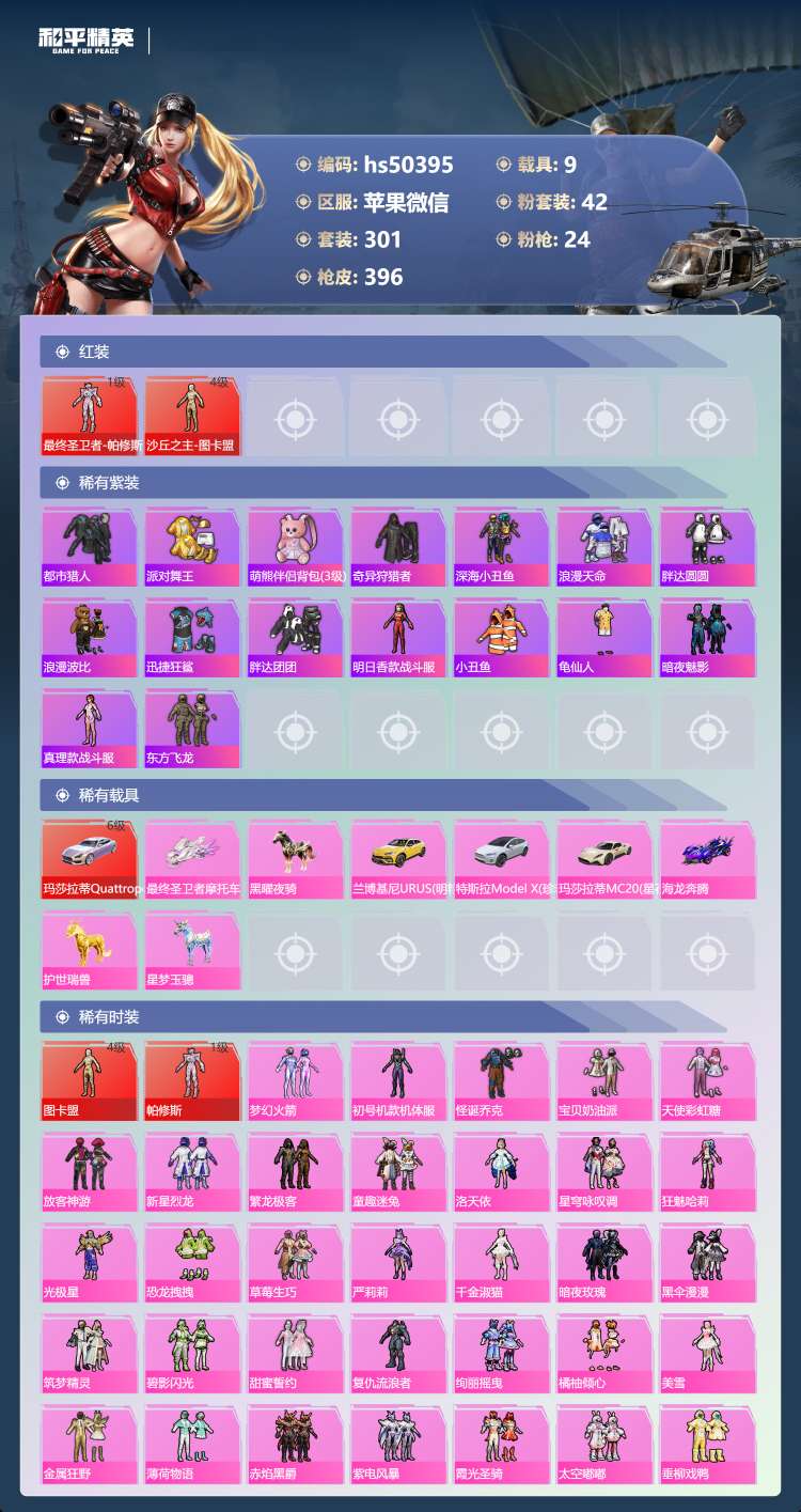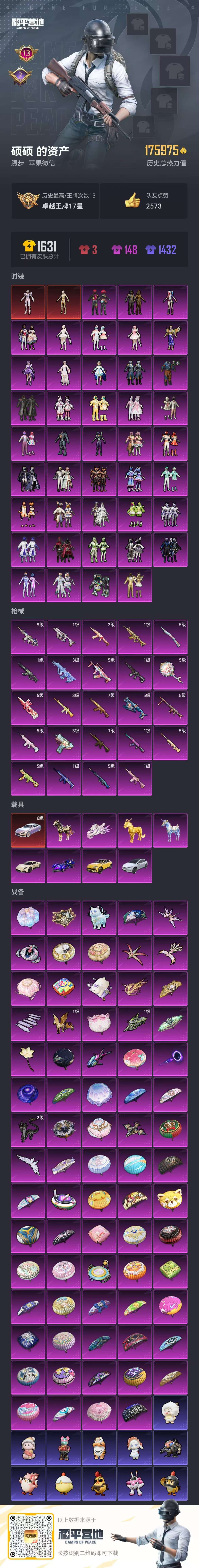 hs50395 苹果微-13王牌印记-2红装-42粉装-24特效枪-9载具-175975热力值-3
