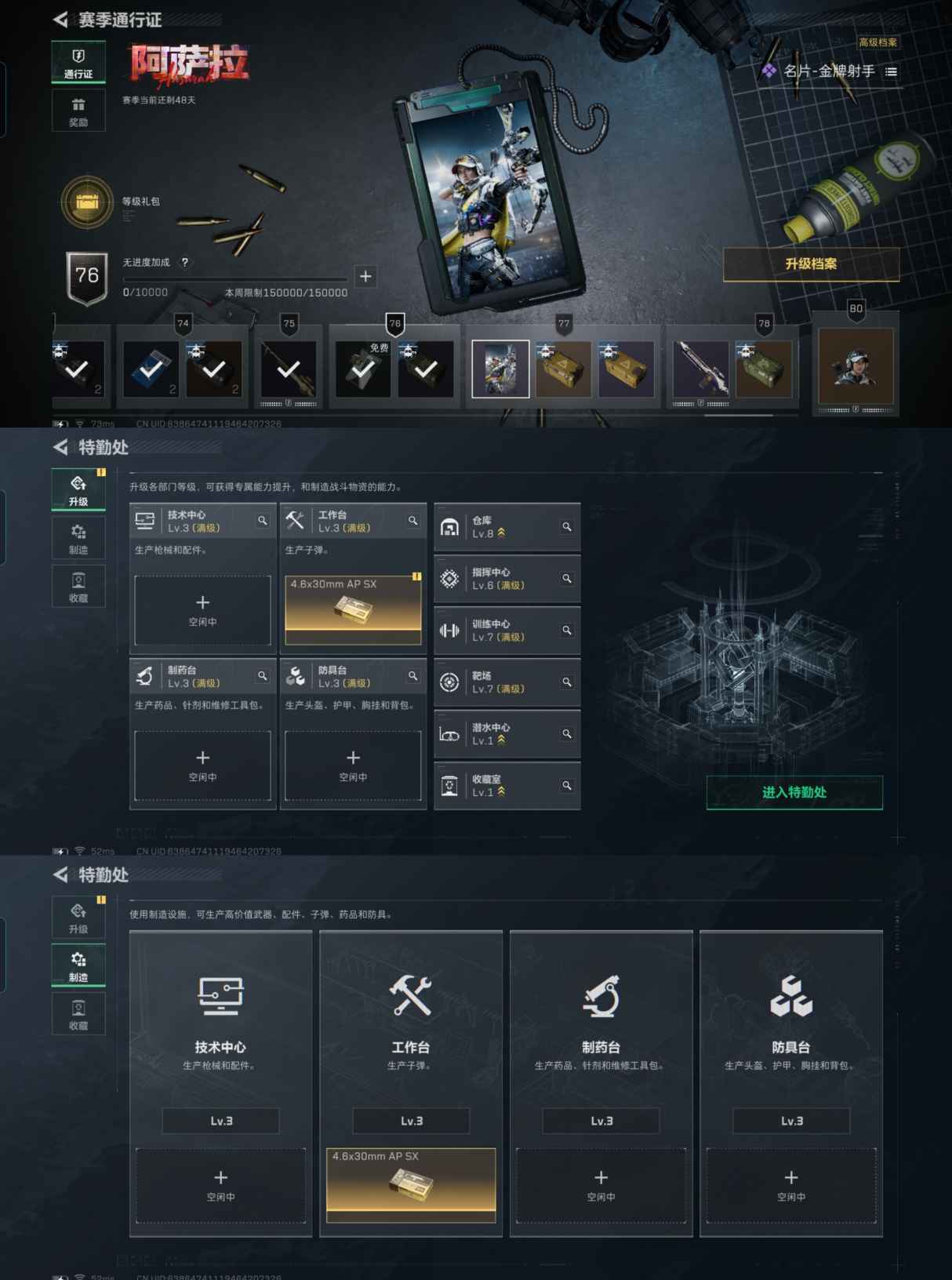【总资产(M)】73.81M【哈夫币】854651【行动等级】60