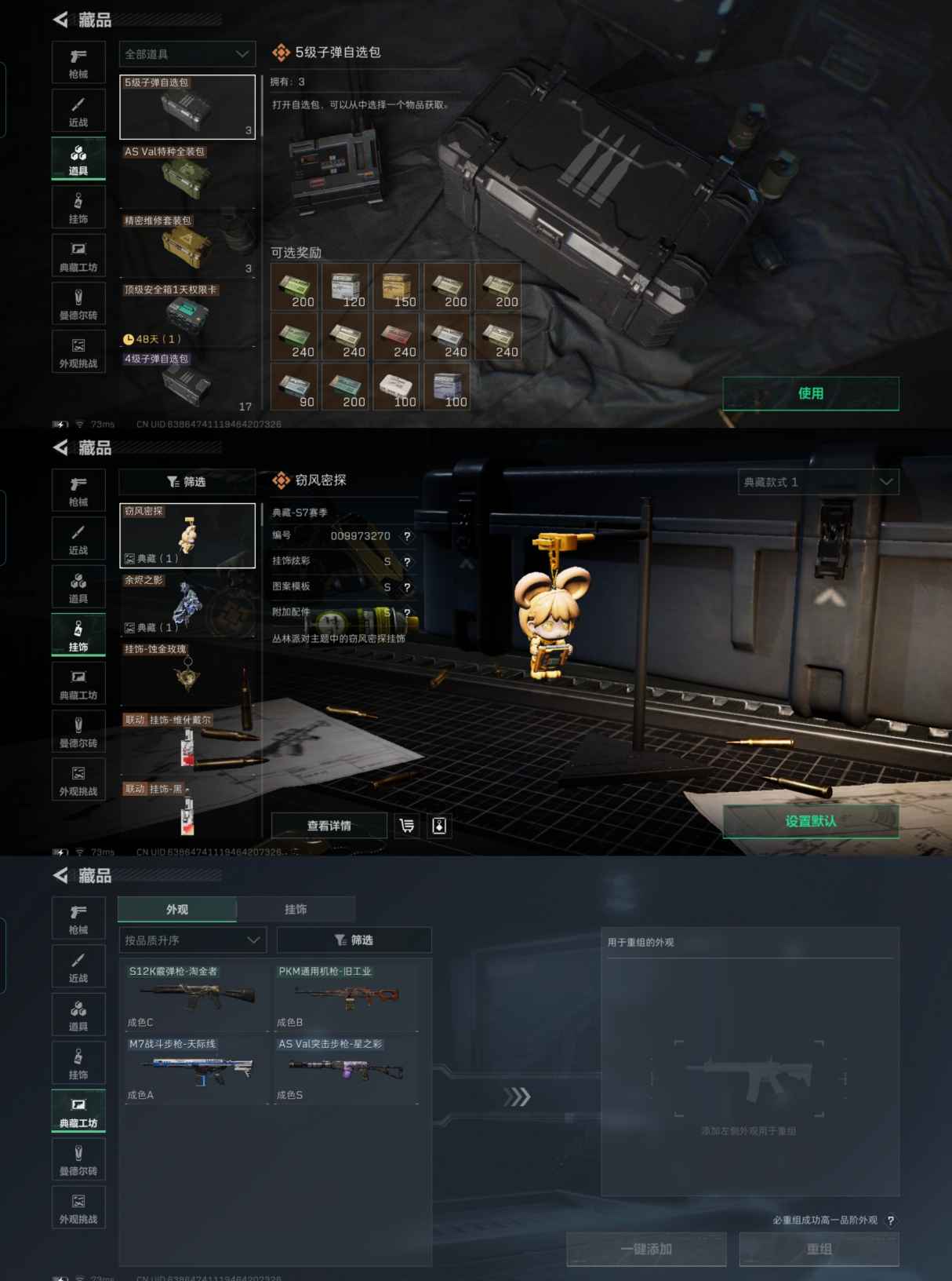 XXSJZ1661【总资产(M)】73.81M【哈夫币】854651【行动等级】60【全面战场等级】18【烽火地带段位】钻石【干员皮肤】无名-夜鹰 蜂医-送葬人·无题密令 深蓝-不破誓约 露娜-黑·天际线 红狼-电锯惊魂 威龙-飞虎【近战武器】黑鹰 信条【枪皮】AS Val突击步枪-星之彩 M7战斗步枪-天际线 M4A1突击步枪-粉色涂装 M4A1突击步枪-高雅黑 M4A1突击步枪-几何碎片 M4A1突击步枪-海色 M4A1突击步枪-繁盛 M4A1突击步枪-阿米娅 AKM突击步枪-彩墨喷涂 AK