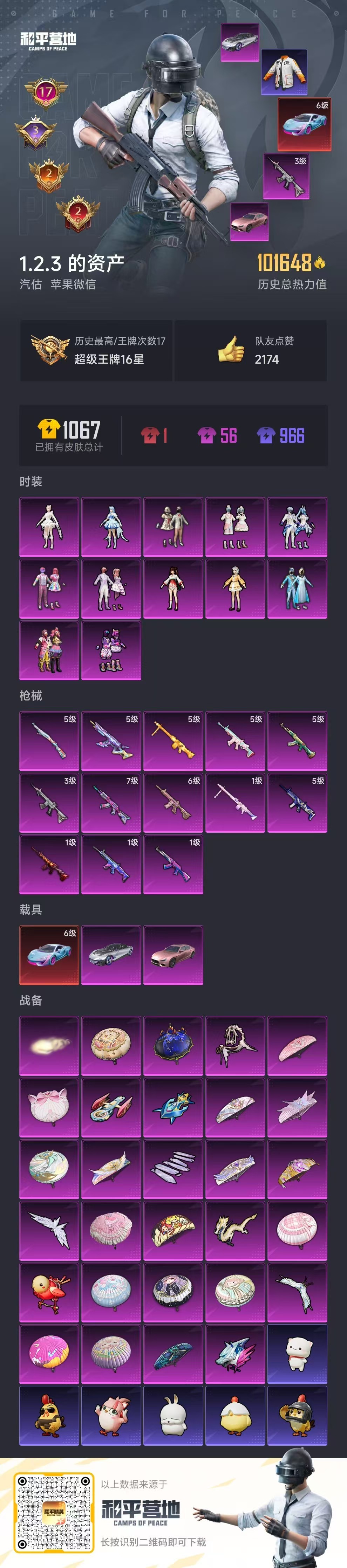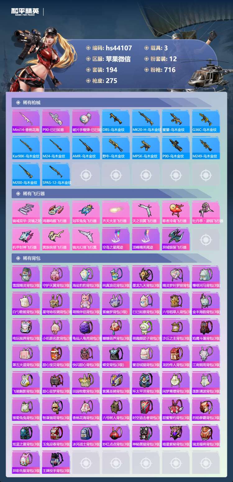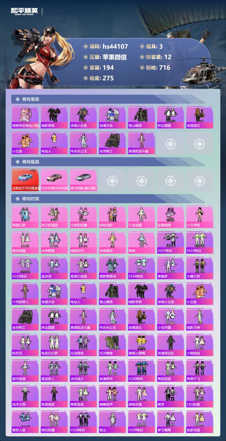 hs44107 苹果v-17王牌印记-12粉装-13特效枪-3载具-101649热力值-194套装