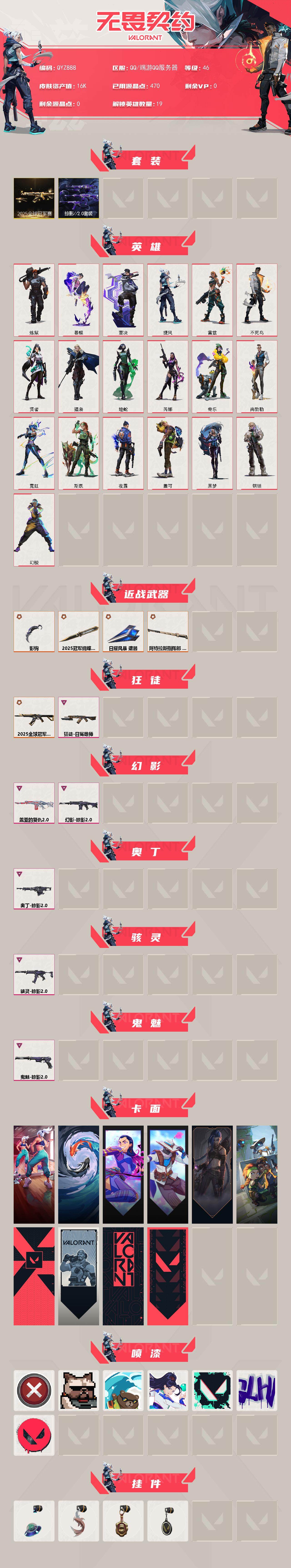 【QYZ888】终极*5/卓越*6/皮肤*35/等级*46/段位:未定级/2025全球冠军赛套装/掠影//2.0套装/幻棱/炼狱/暮蝶/壹决/捷风/雷兹/不死鸟/贤者/猎枭/蝰蛇/芮娜/奇乐/尚勃勒/霓虹/斯凯/夜露/盖可/黑梦/钢锁/近战武器-2025全球冠军赛 蝴蝶刀/近战武器-影钩/近战武器-日耀风暴 遗器/近战武器-阿特拉斯指挥部 甩棍/狂徒-2025全球冠军赛/狂徒-日冕雄师/幻影-盖亚的复仇//2.0/幻影-掠影//2.0/奥丁-掠影//2.0/骇灵-掠影//2.0/鬼魅-掠影//2