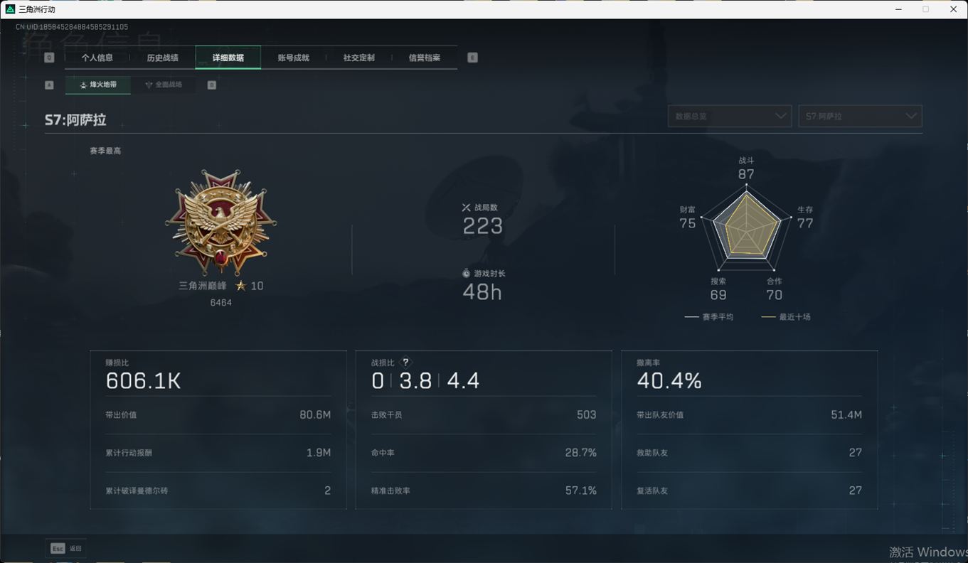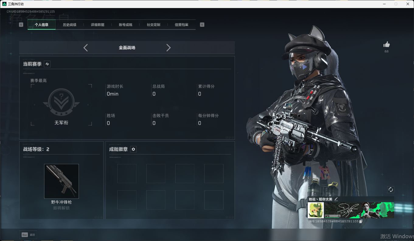 N6405/QQ区/【个人信息】战场等级1军士长/行动等级60角洲巅峰大1【哈夫币】1233w【总资
