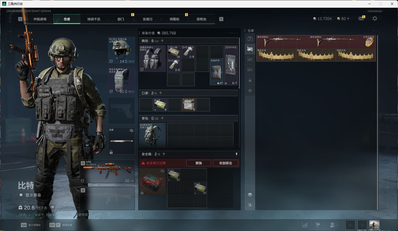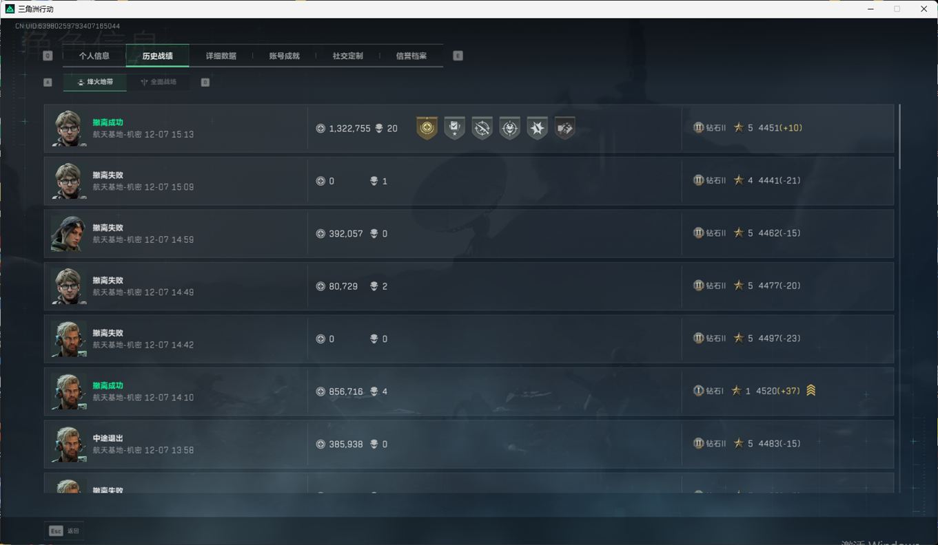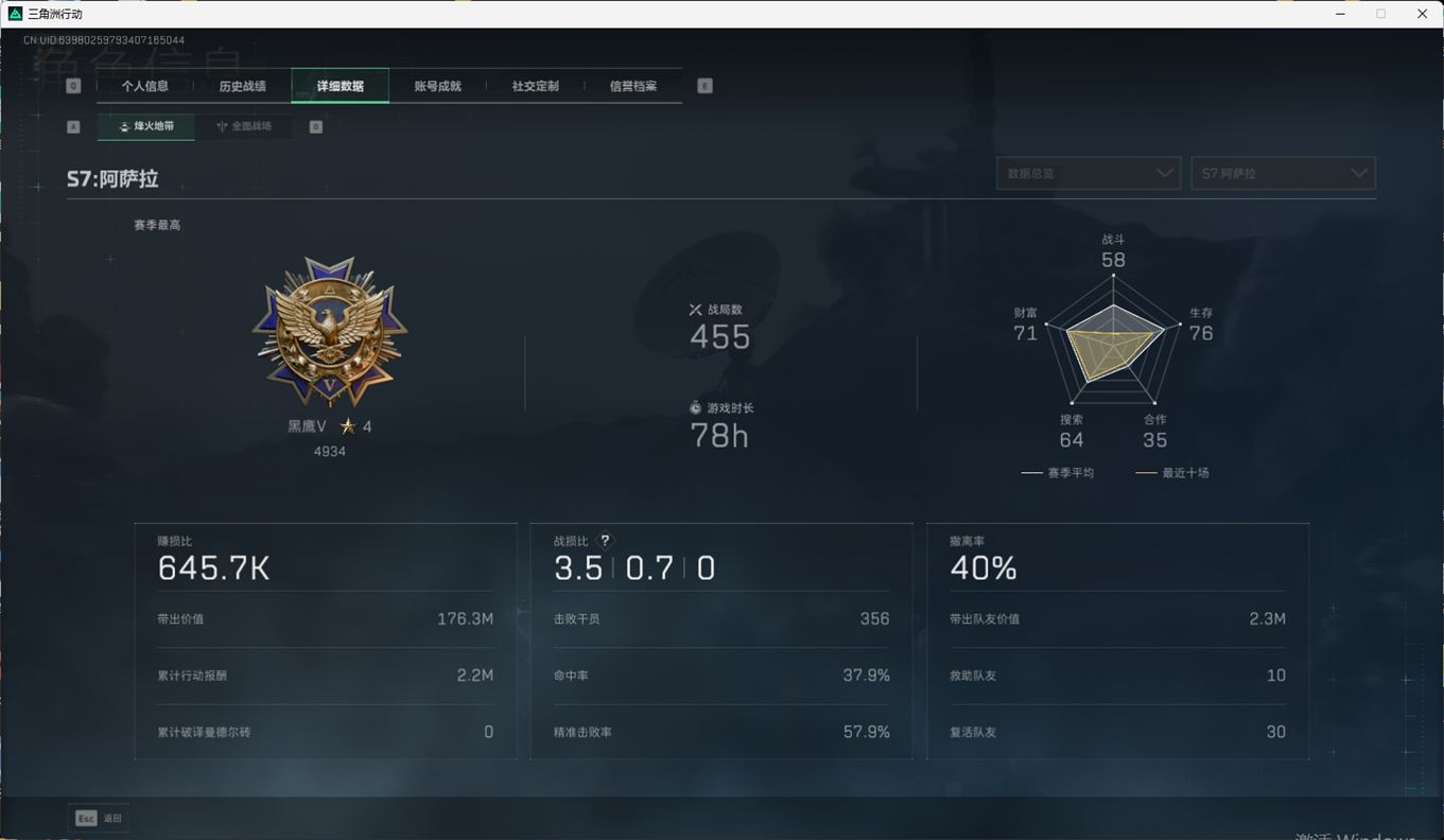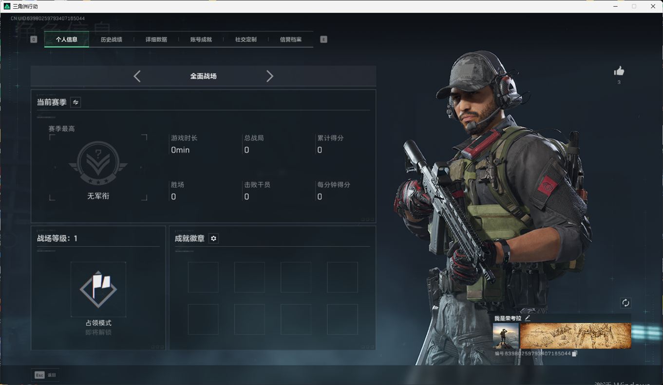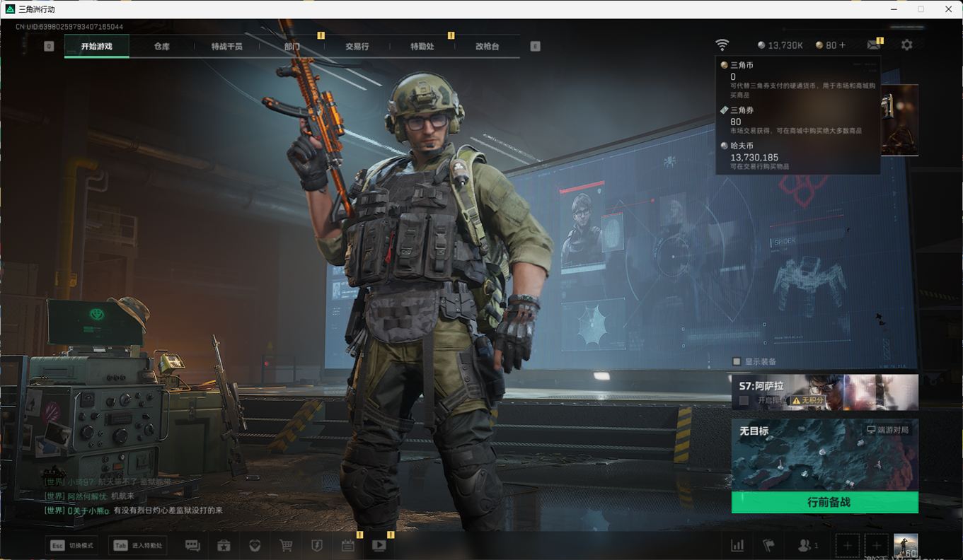 N6399/QQ区/【个人信息】战场等级1军士长/行动等级60黑鹰【哈夫币】1373w【总资产】74