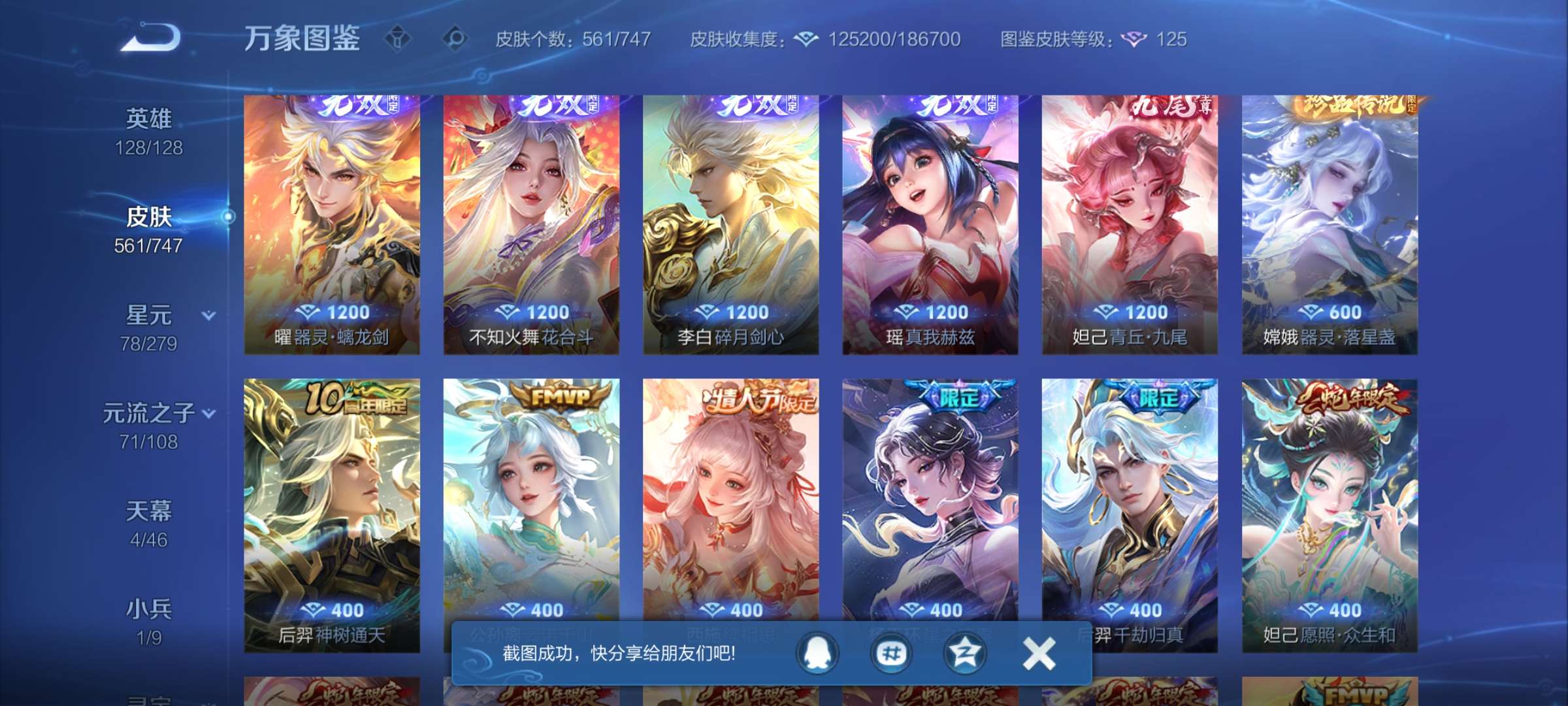 安卓QQ-13典藏-91传说-5无双-561皮肤-128英雄-至圣王者-便宜出很多皮肤诚信出可改二次