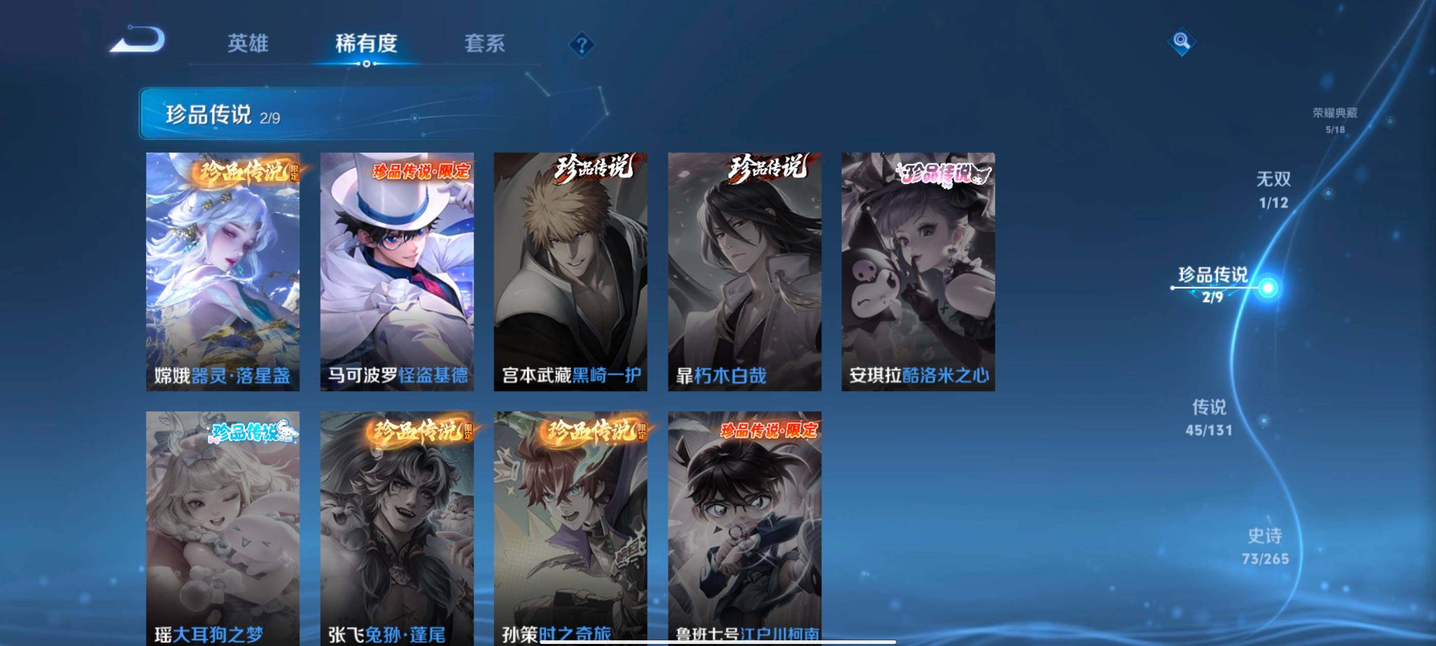 安卓Q-V10-最强王者段位-127英雄-327皮肤-5典藏皮肤-1无双-2珍品传说-45传说-73史诗qq限制