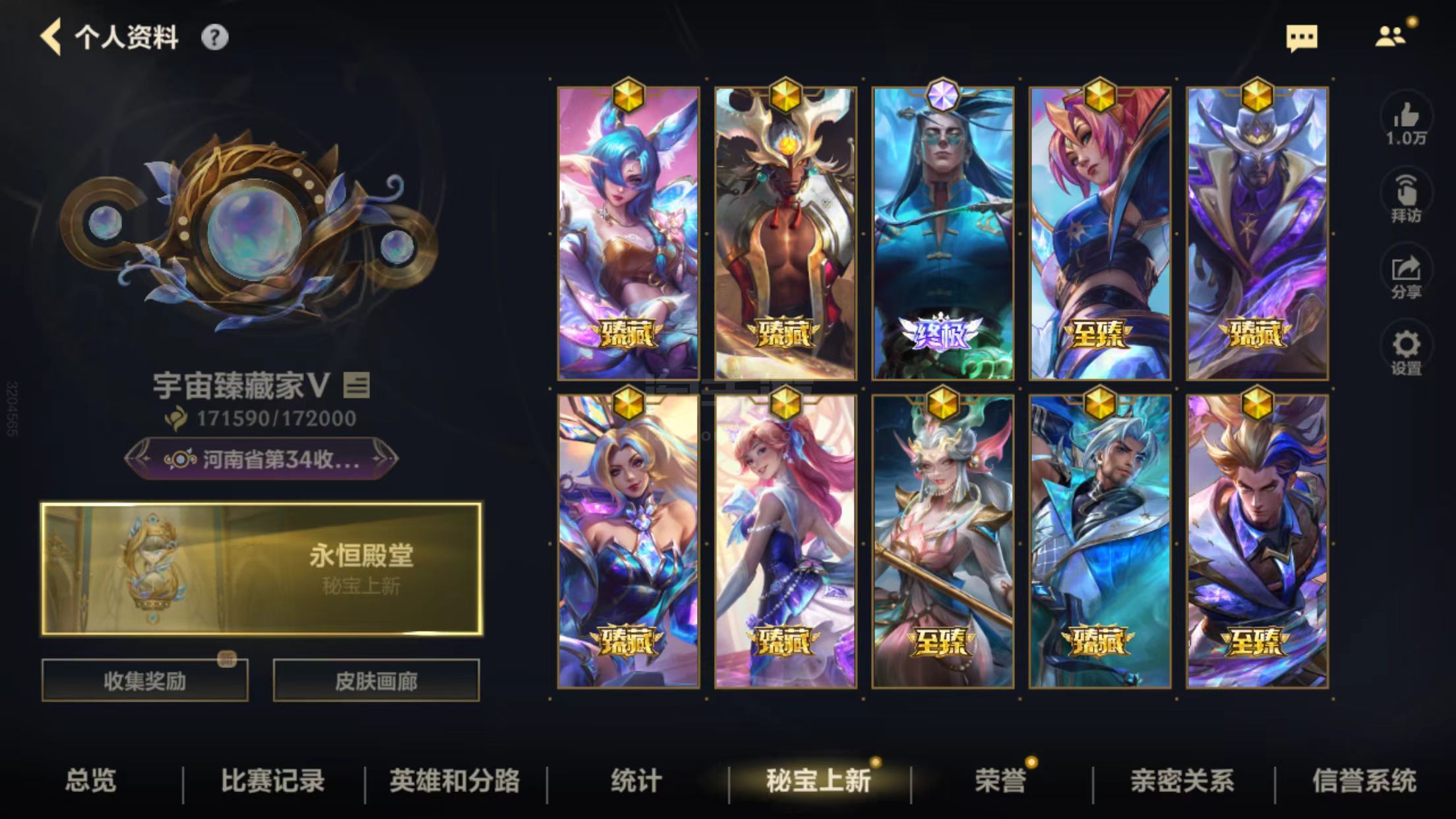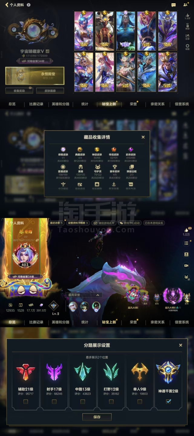 苹果V,可以转安卓!粉名+金名!17万多收藏积分!1终极!4典藏!50神话!白龙回城!各种顶级拖尾!海克斯播报!玄都播报!细节拉满!连体三角洲里面还有10万点卷!三角洲全红皮
