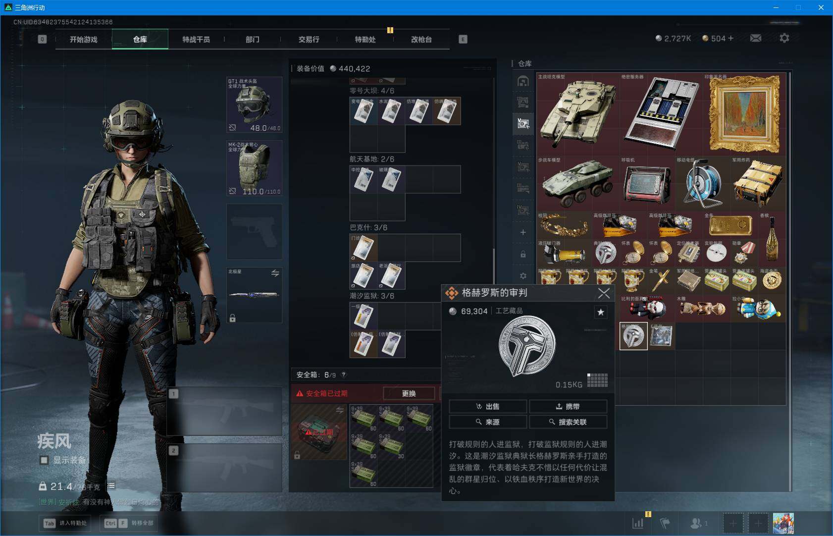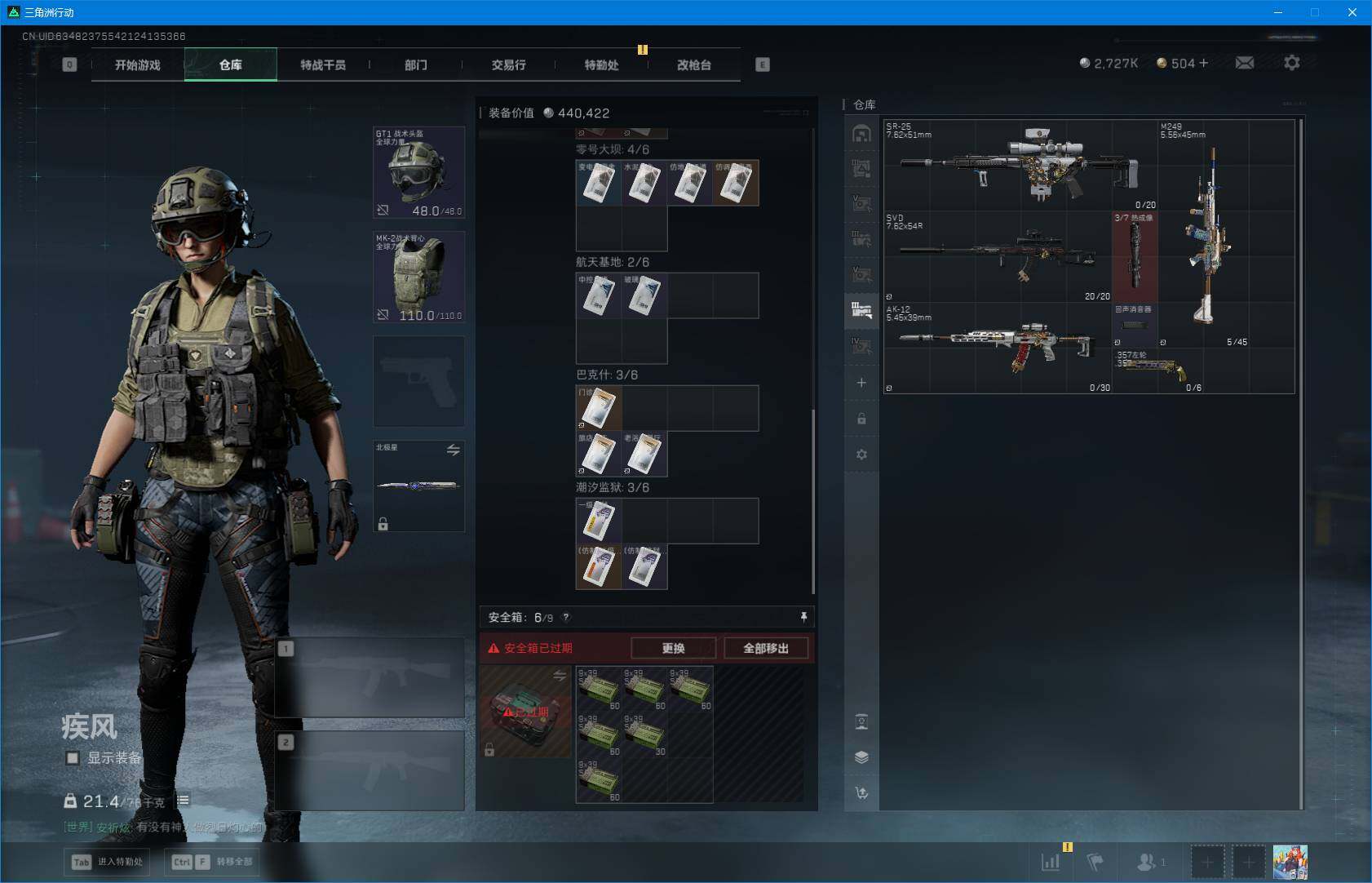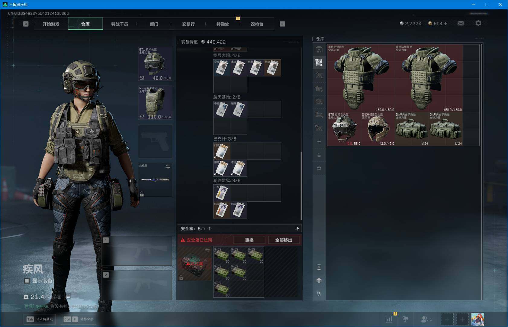 总资产(M):215M/哈夫币(K):2727K