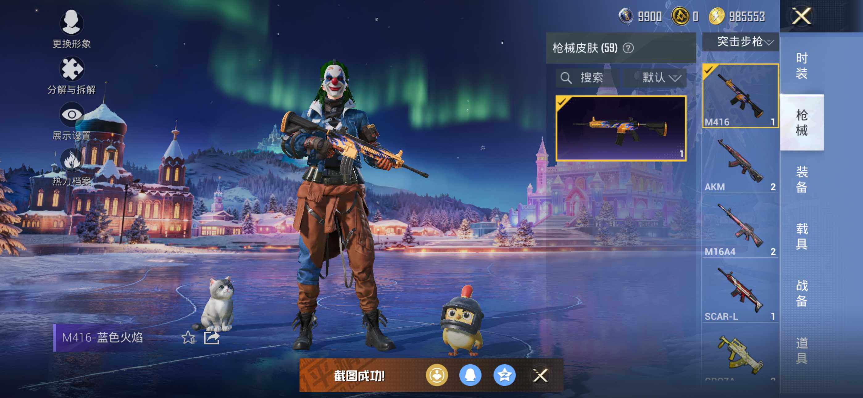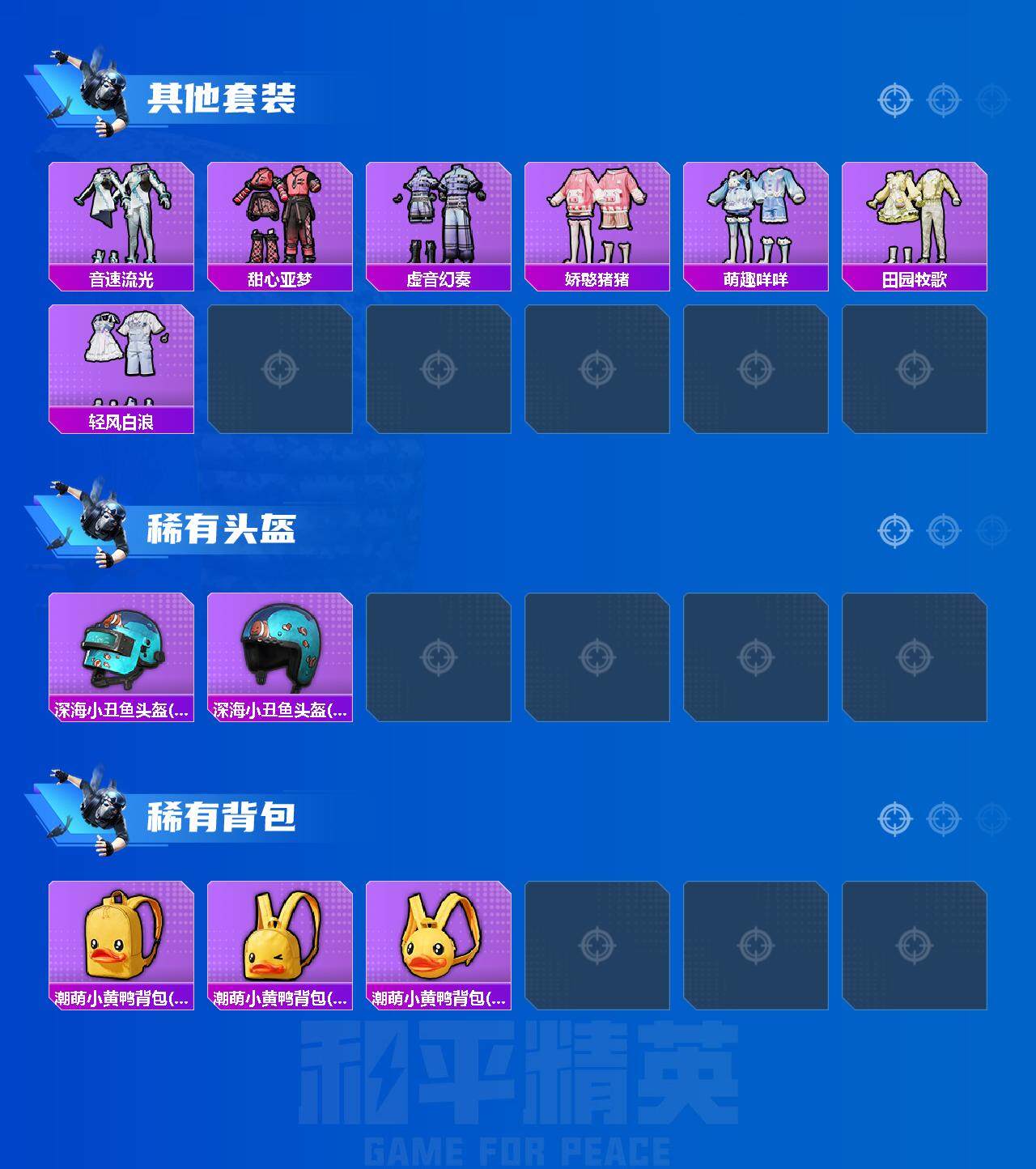 【稀有枪皮】:AKM-影袭,AKM-破晓战魂,M16A4-甜心亚梦,M16A4-蓝色火焰,S