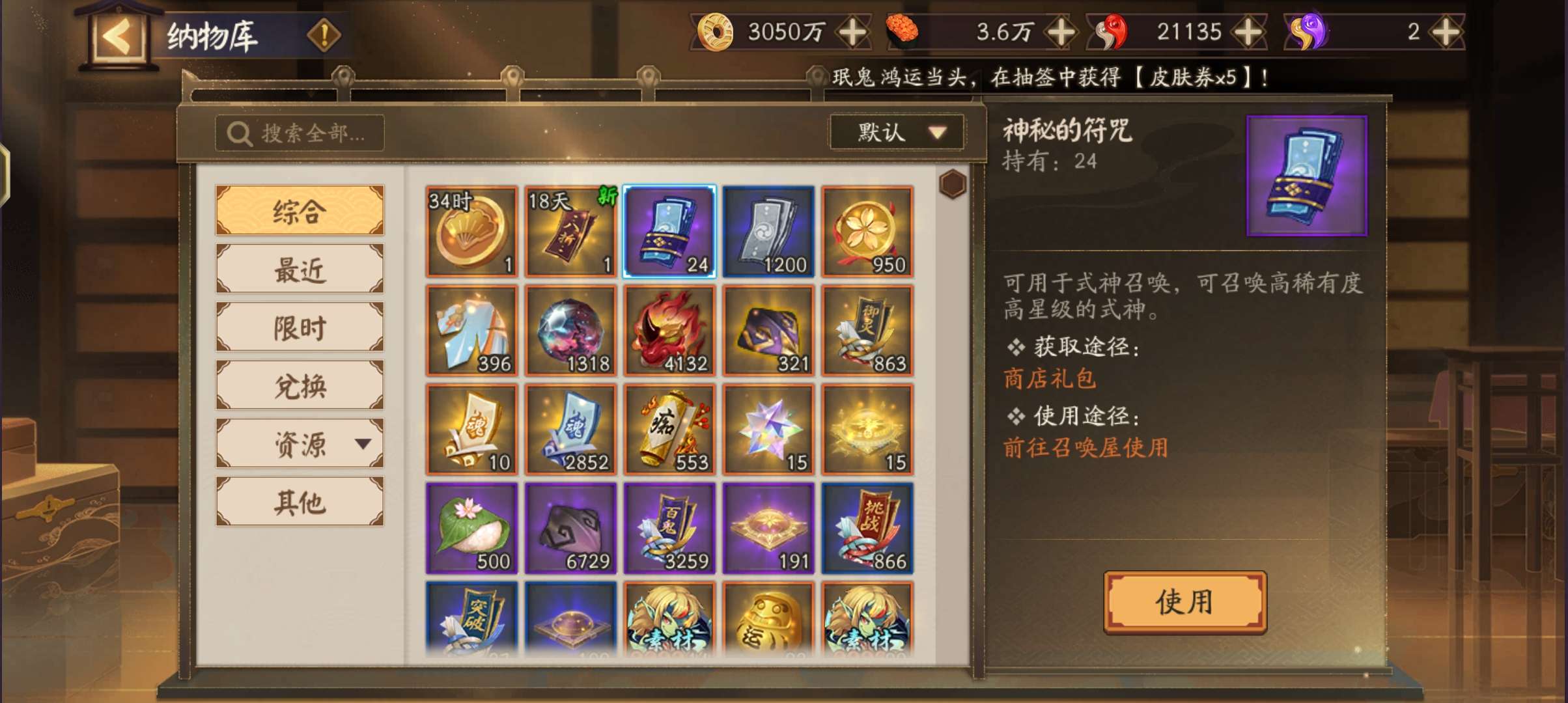 散一速157,差5个全图鉴,2万1勾玉,24卷,一典藏皮,6星太鼓21个,五星鼓40个,可小砍