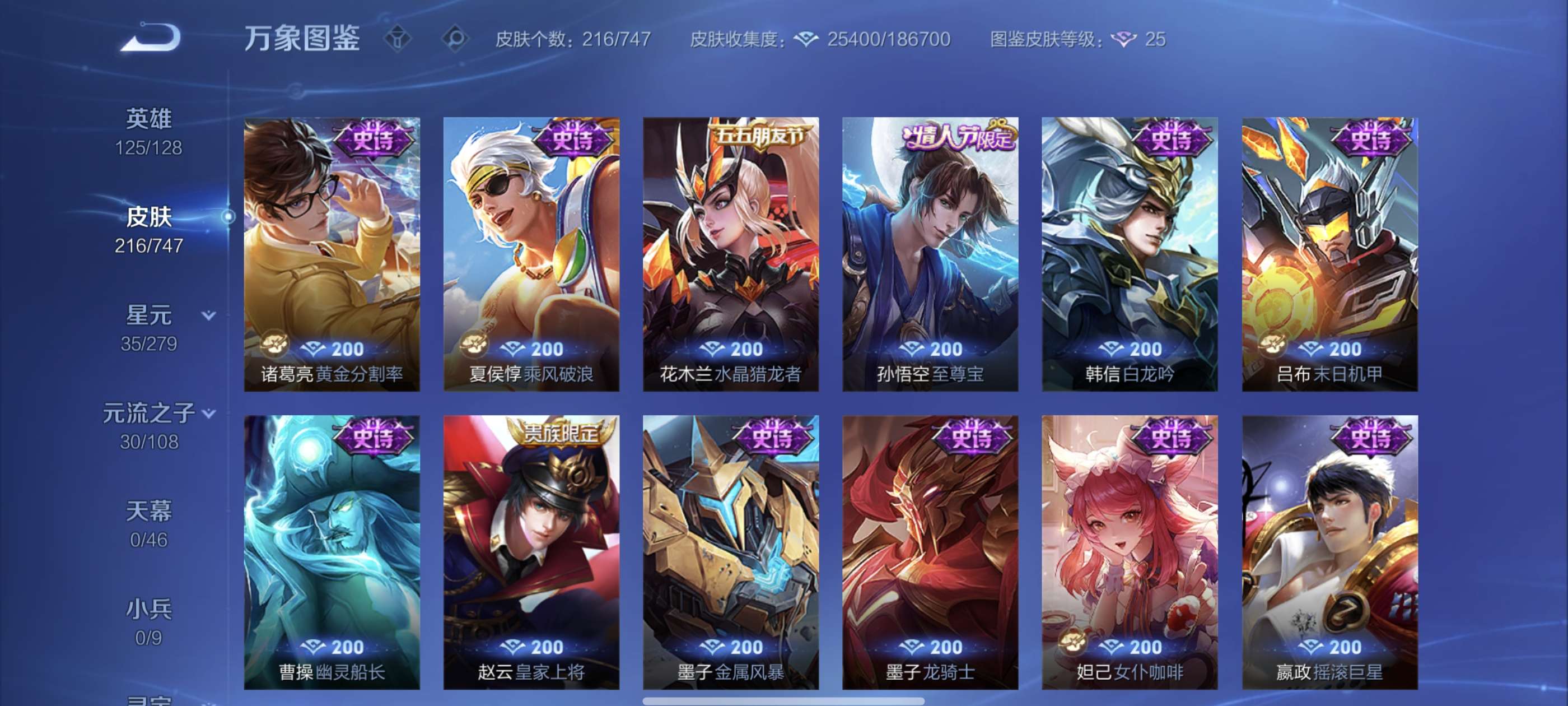 安卓QQ-1典藏-3传说-216皮肤-125英雄-无双王者-便宜卖了 荣耀典藏 贵7