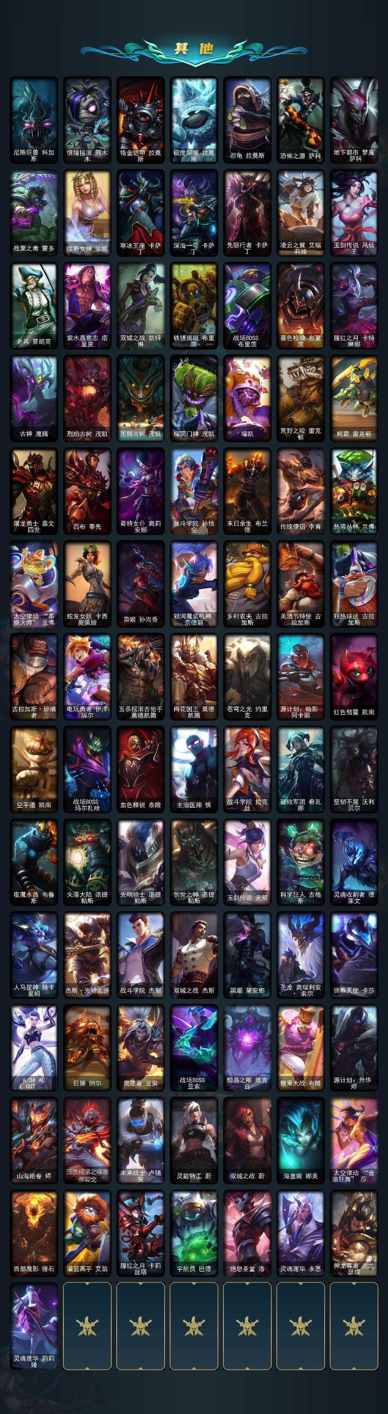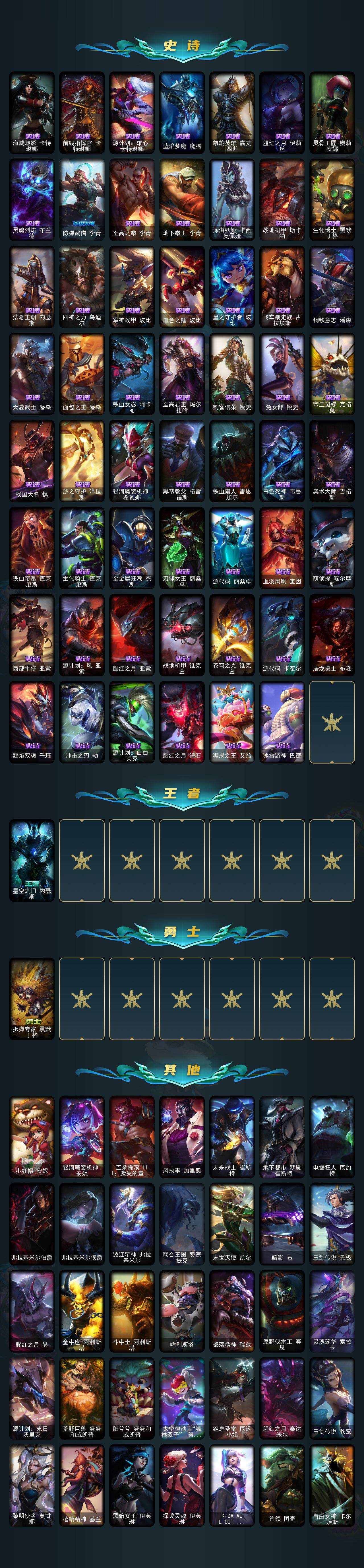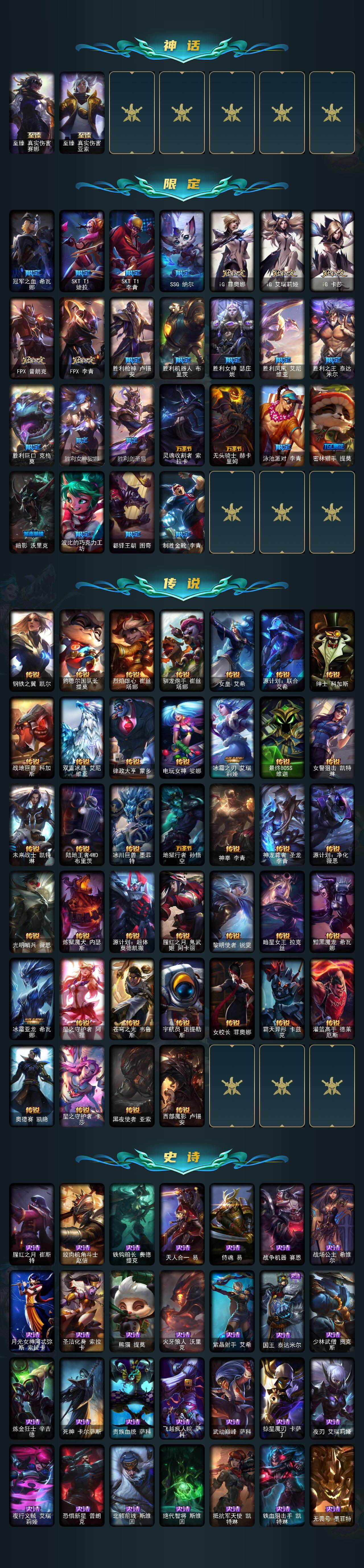 171英雄/321皮肤/2终极/30神话/37限定/3臻彩/240炫彩