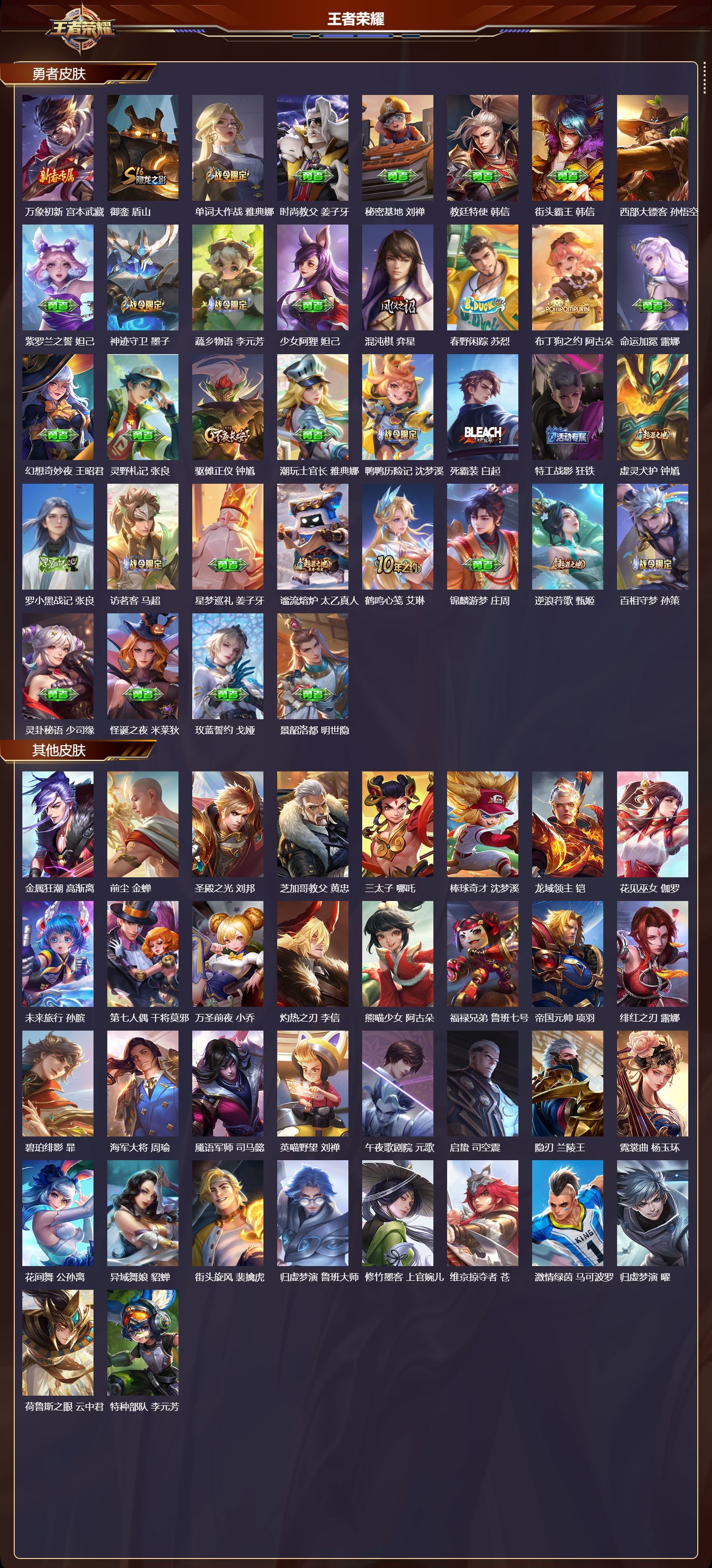 安卓QQ/无双王者/220皮肤/127英雄/0典藏/0珍品无双/1无双/5珍品传说/8传说/64史诗