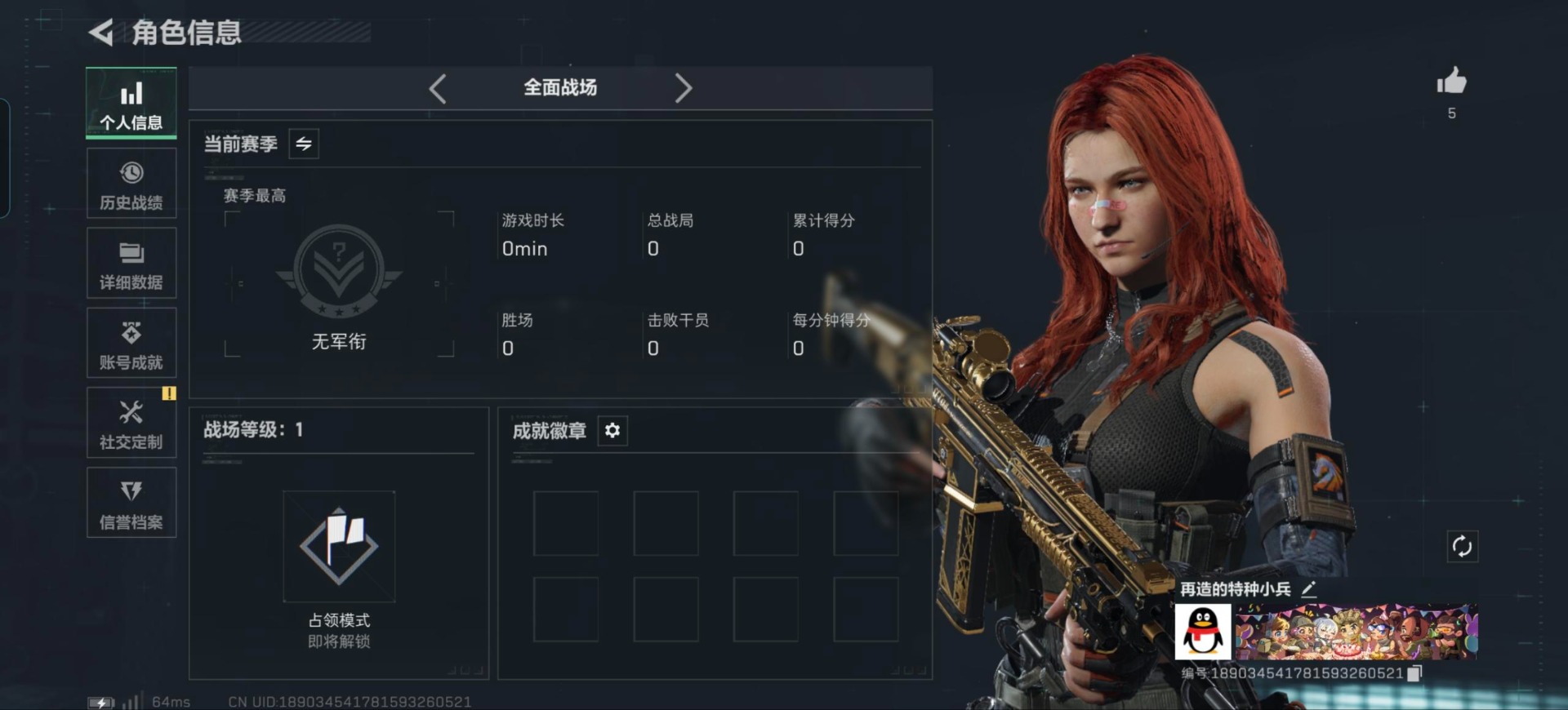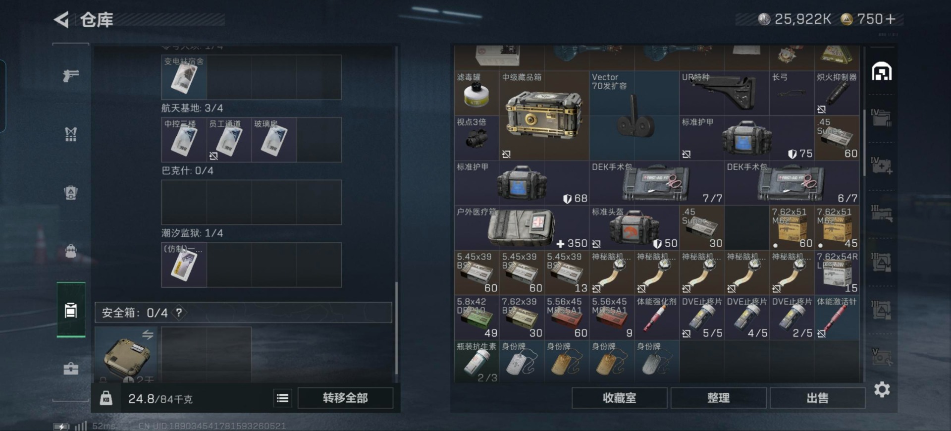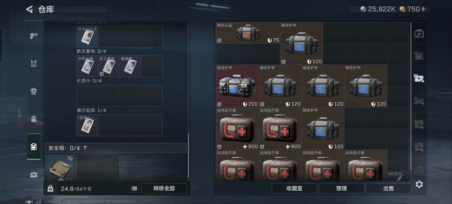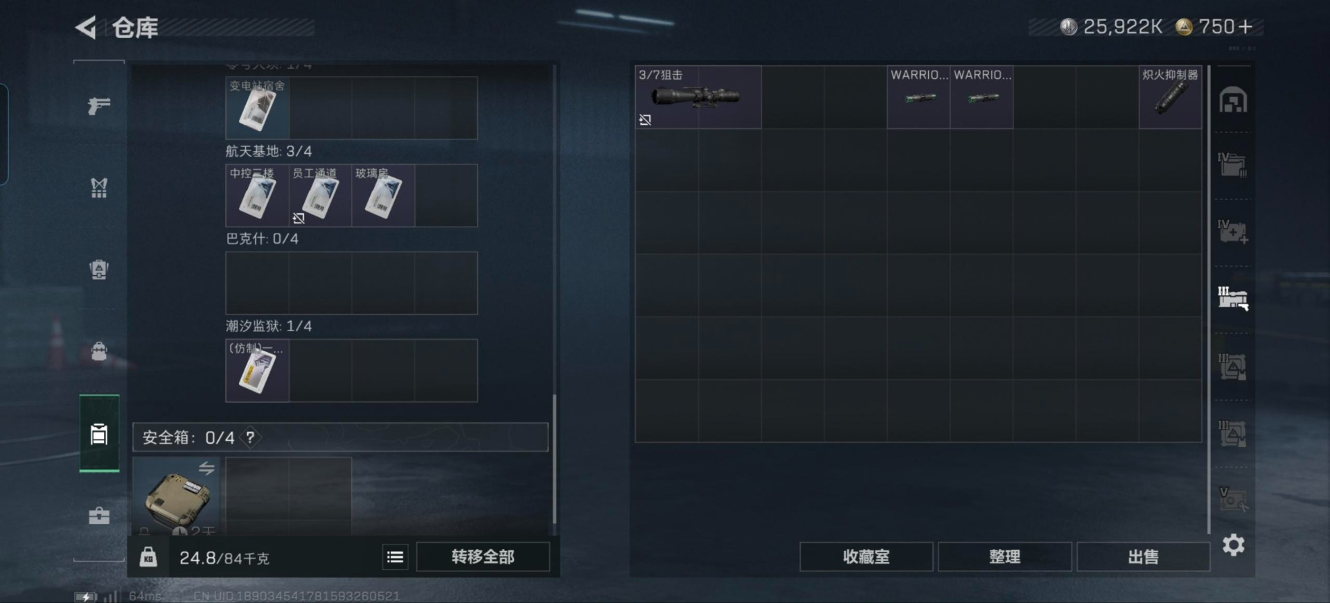 总资产:111M 1干员外观 3传说枪械 哈夫币:25.922K 可二次 可修改实名