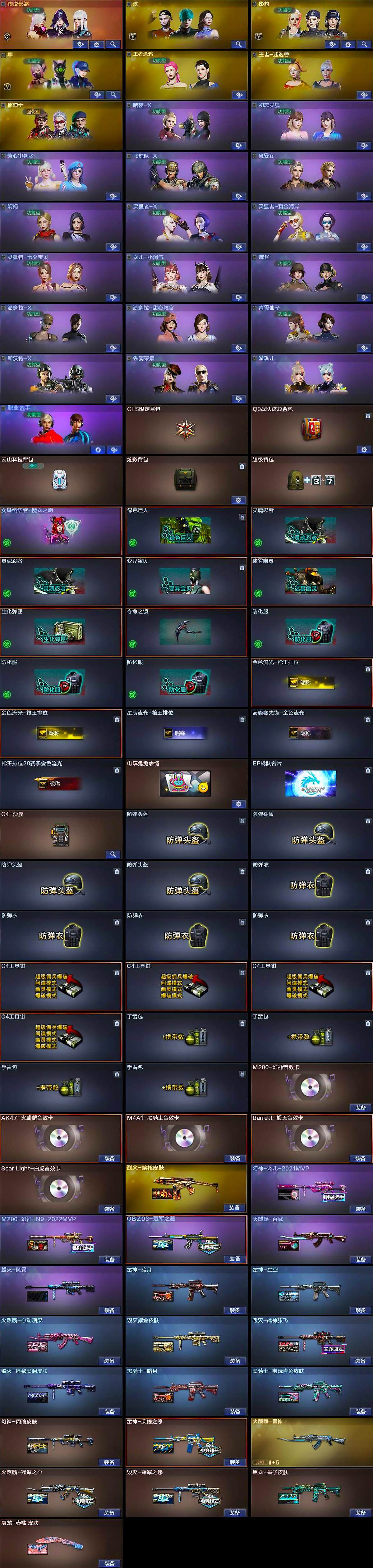 【热门武器】:传说暗裔,QBZ03-金色蔷薇,Scar Light-白虎,M200-幻神,白虎-电玩蓝兔,M4A1-黑骑士,雷神-小红,COP 357-幻灵,沙鹰-修罗*3,炽芒蝶刃,金刚伞