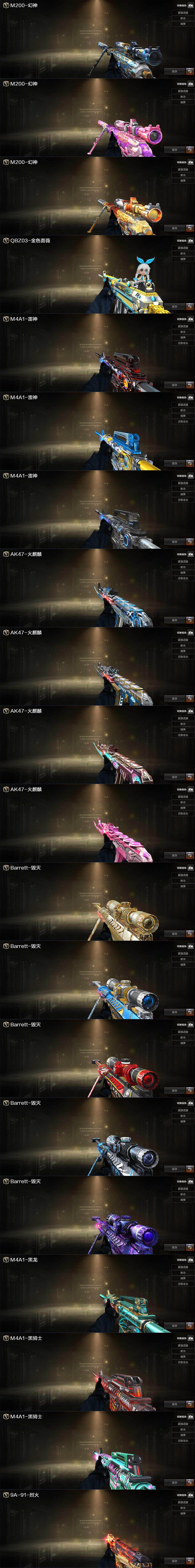 【音效卡】:M200-幻神音效卡,AK47-火麒麟音效卡,M4A1-黑骑士音效卡,Barrett-毁灭音效卡