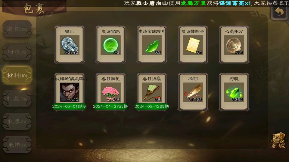 骆统+史诗星周不疑+界马超+300多大盒子(包含银币
