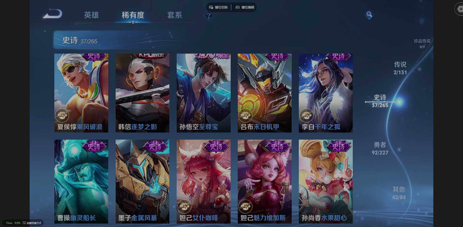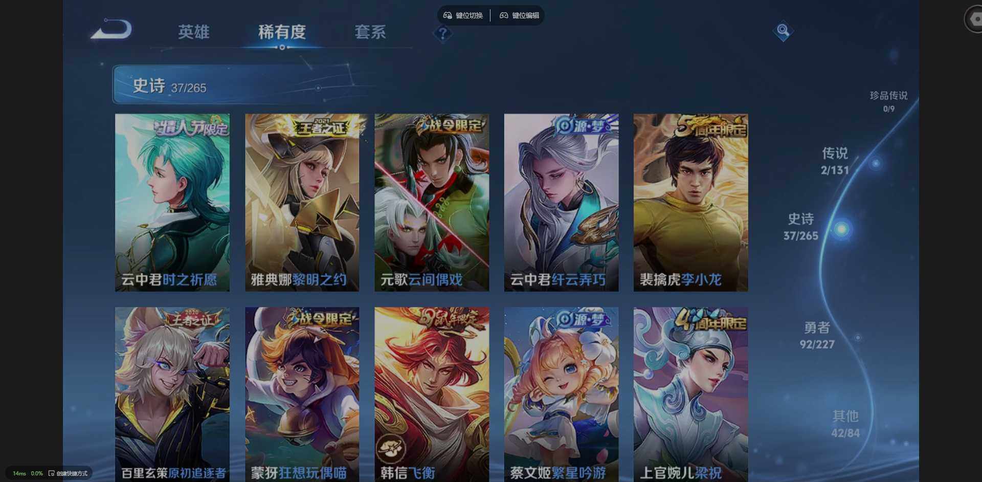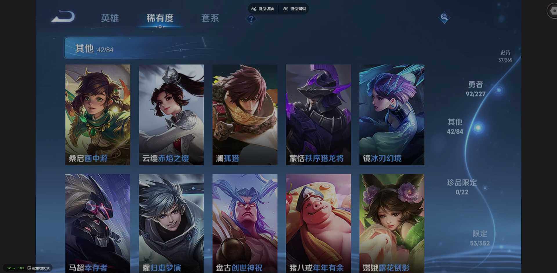 实名: 可修改 贵族等级: V7 英雄数: 123 皮肤数: 173 传说皮: