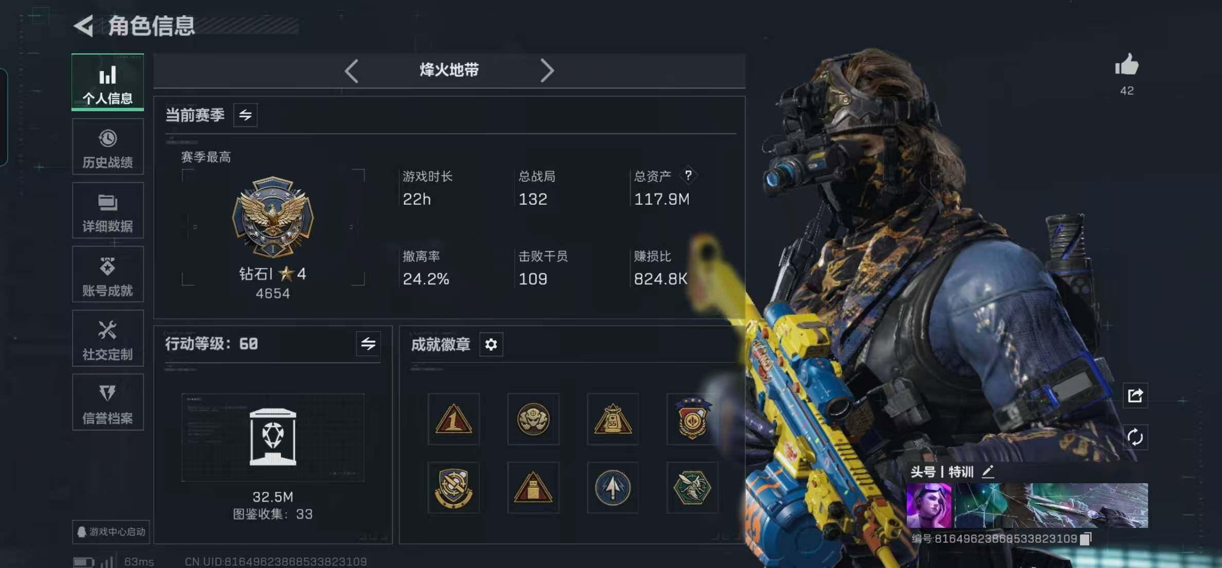 110k哈伏币-80m流动资产-60烽火等级-钻石-50战场等级-军士长 zp3308
