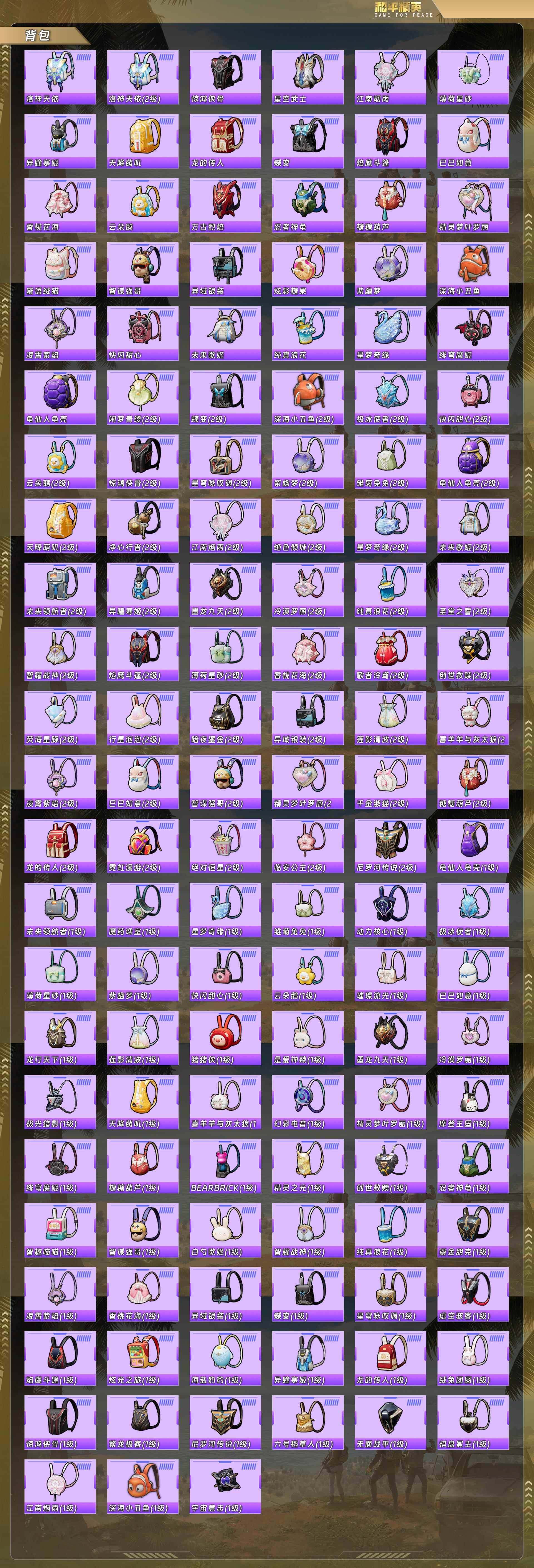 身法号-深海小丑鱼/都市猎人/浪漫天命/迅捷狂鲨/晶辉守护/棋盘冕主/霞光圣骑/小可学妹/圣堂之誓/小蓝/异瞳寒姬/英伦信使/罗征/奇迹舞步 美琪/M416-心之恋语[6级]/SCAR-L-金蛇镇世[3级]/AKM-绿萝繁花[5级]/Mk14-精灵梦叶罗丽[5级]/合金龙骨(蓝)没战神框 hp4201