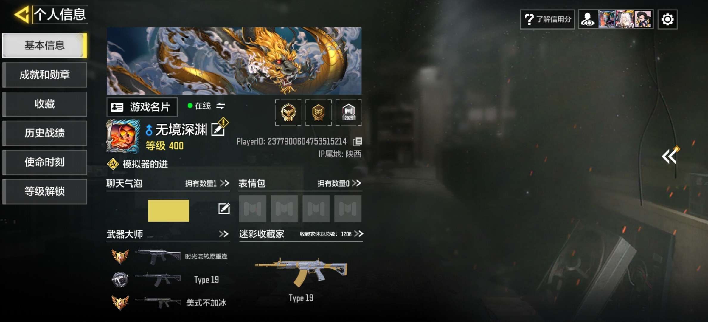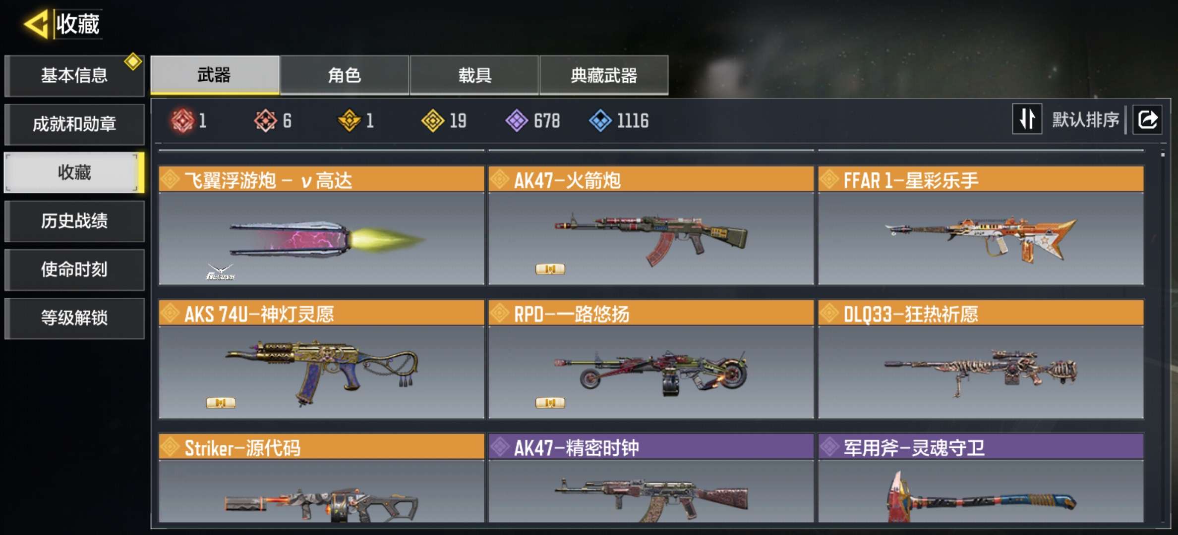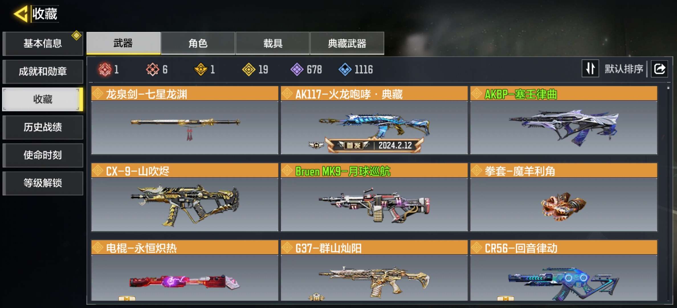 QQ的账号,6神话,1典藏,19传说,10几把紫皮悬浮机瞄,1200个黄金,白银,砖石,先锋联赛迷彩
