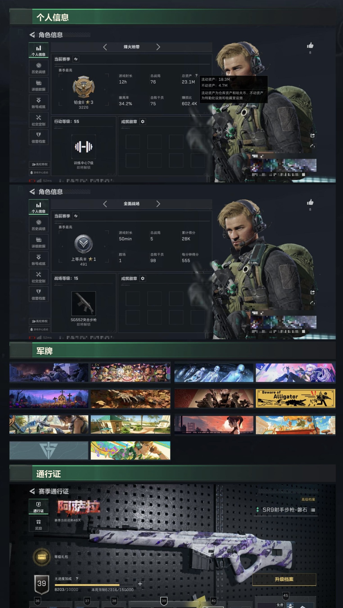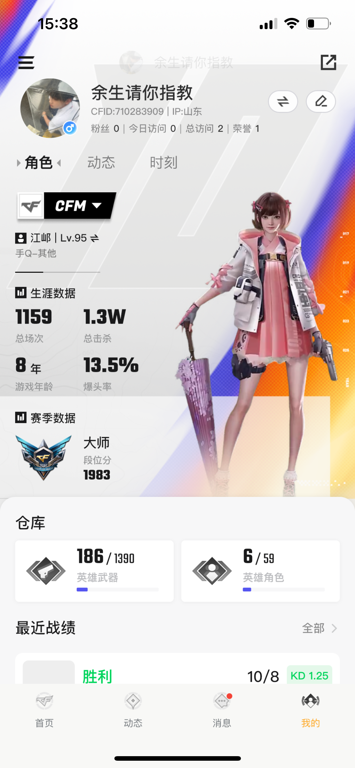 毕业刀皮非常有价值和手感 其余全是t0天王级别的皮肤 手感一个比一个好 适合炸鱼练手号 q等级54级 q音乐超级会员7级 手游cf186英雄级武器8年玩家 王者338皮肤 1典藏 10传说 99史