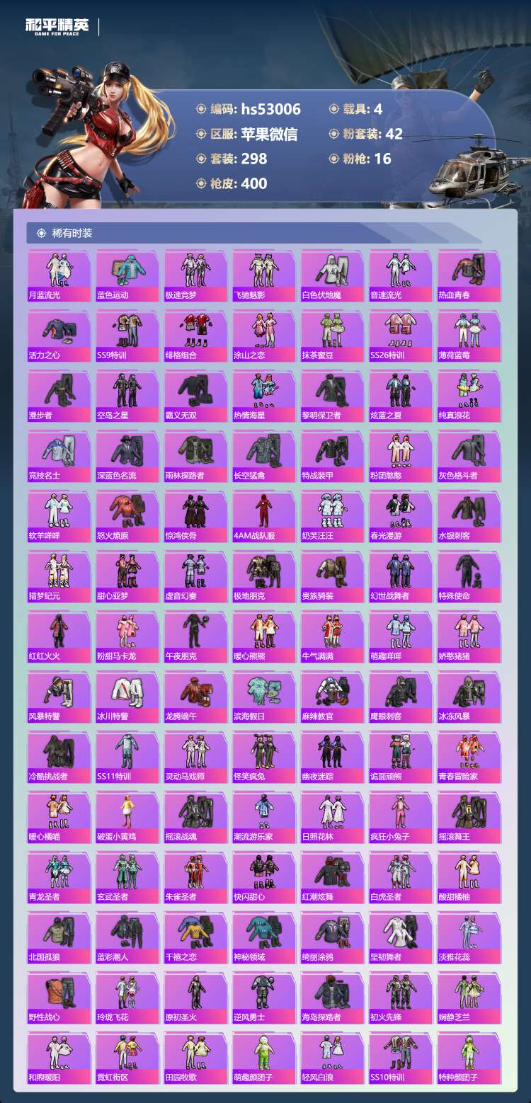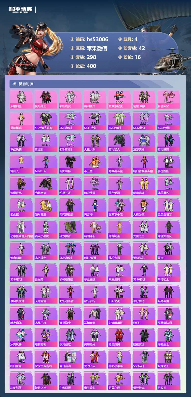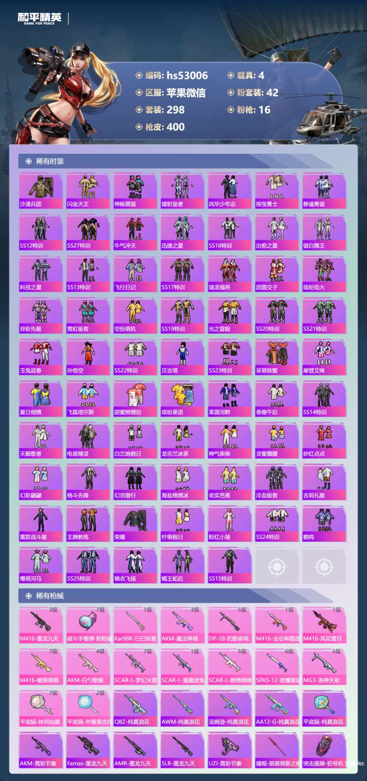 hs53006 苹果v-21王牌印记-有战神框-1红装-42粉装-16特效枪-4载具-166745