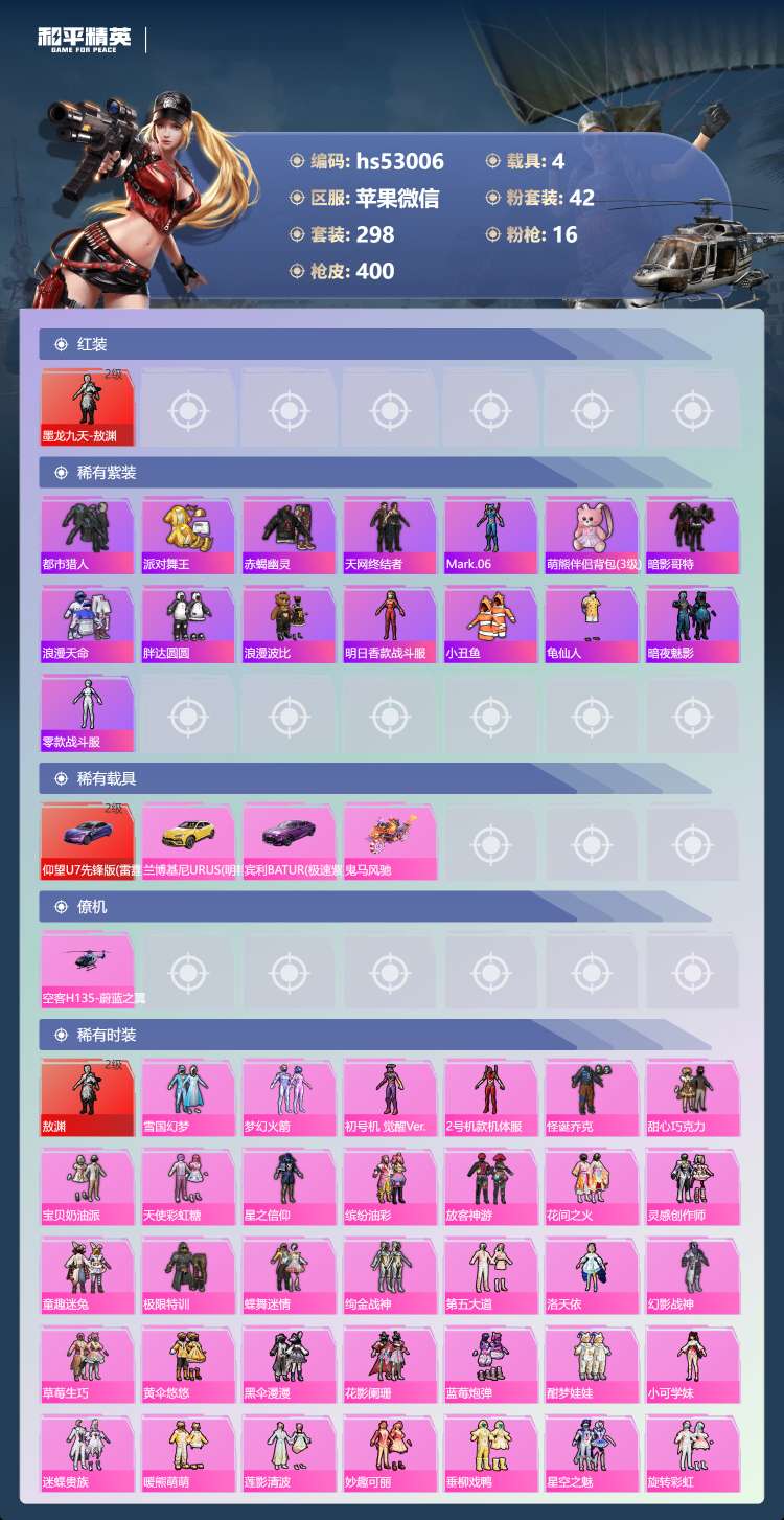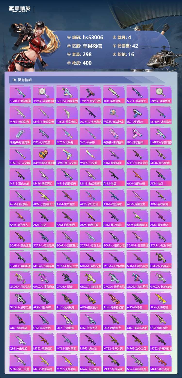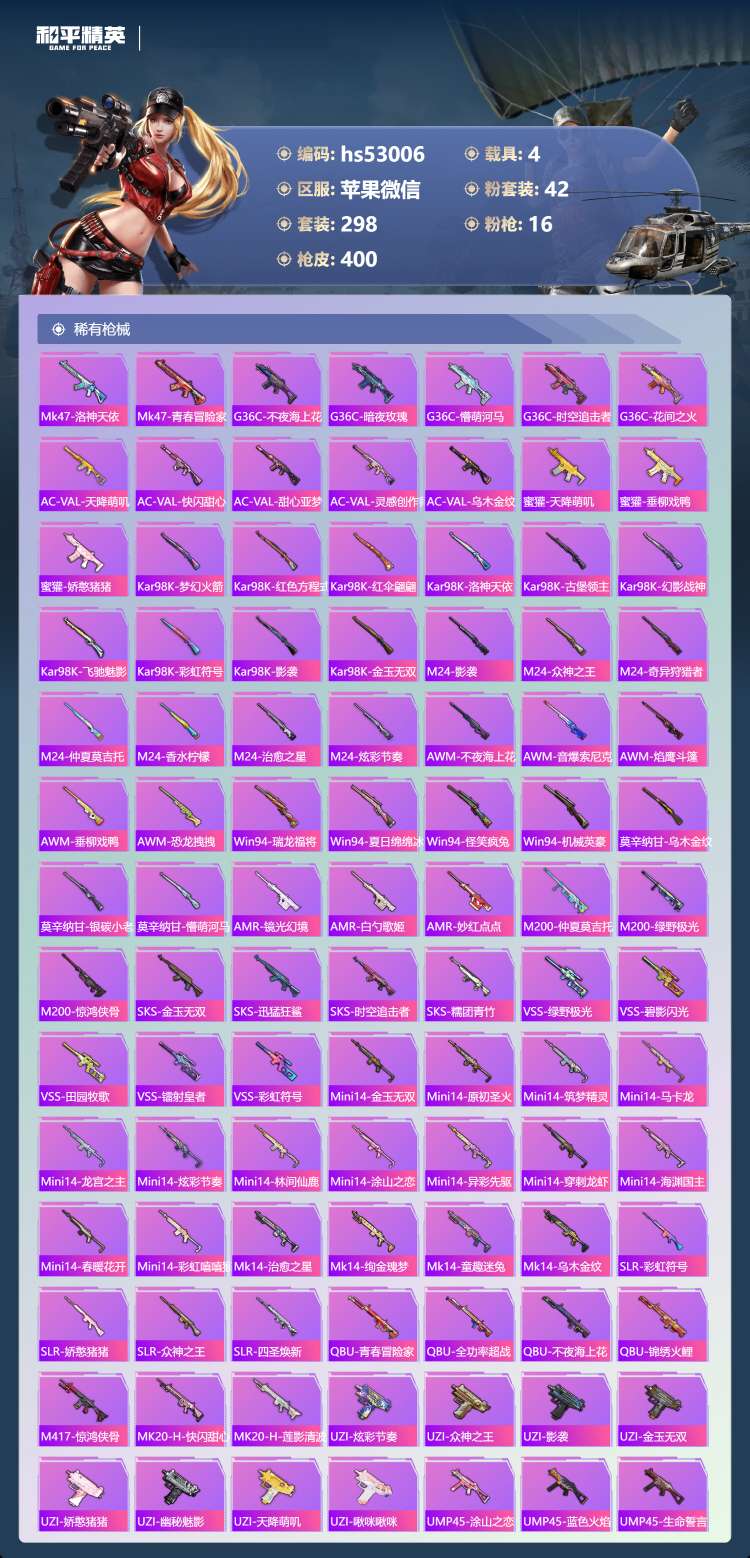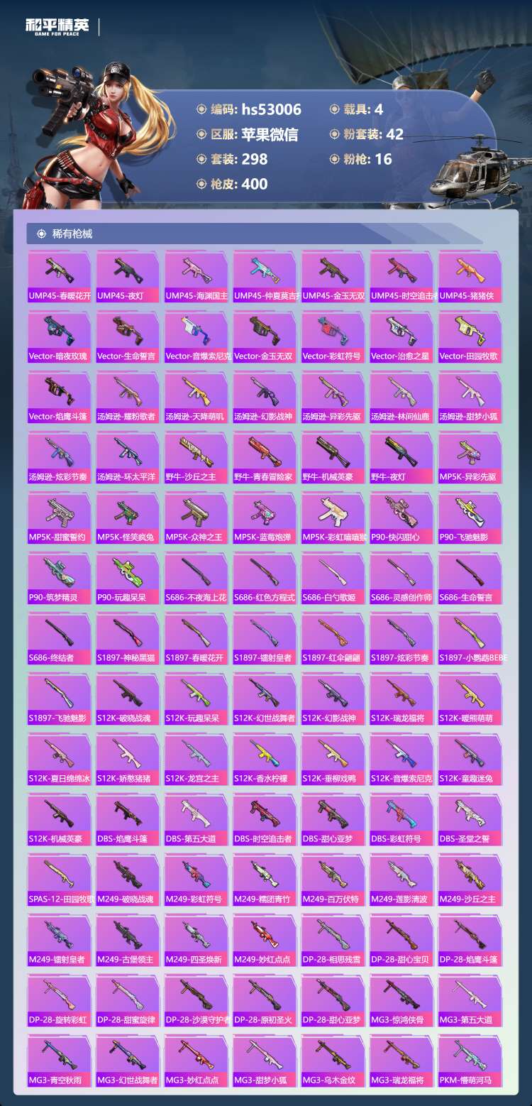 hs53006 苹果v-21王牌印记-有战神框-1红装-42粉装-16特效枪-4载具-166745