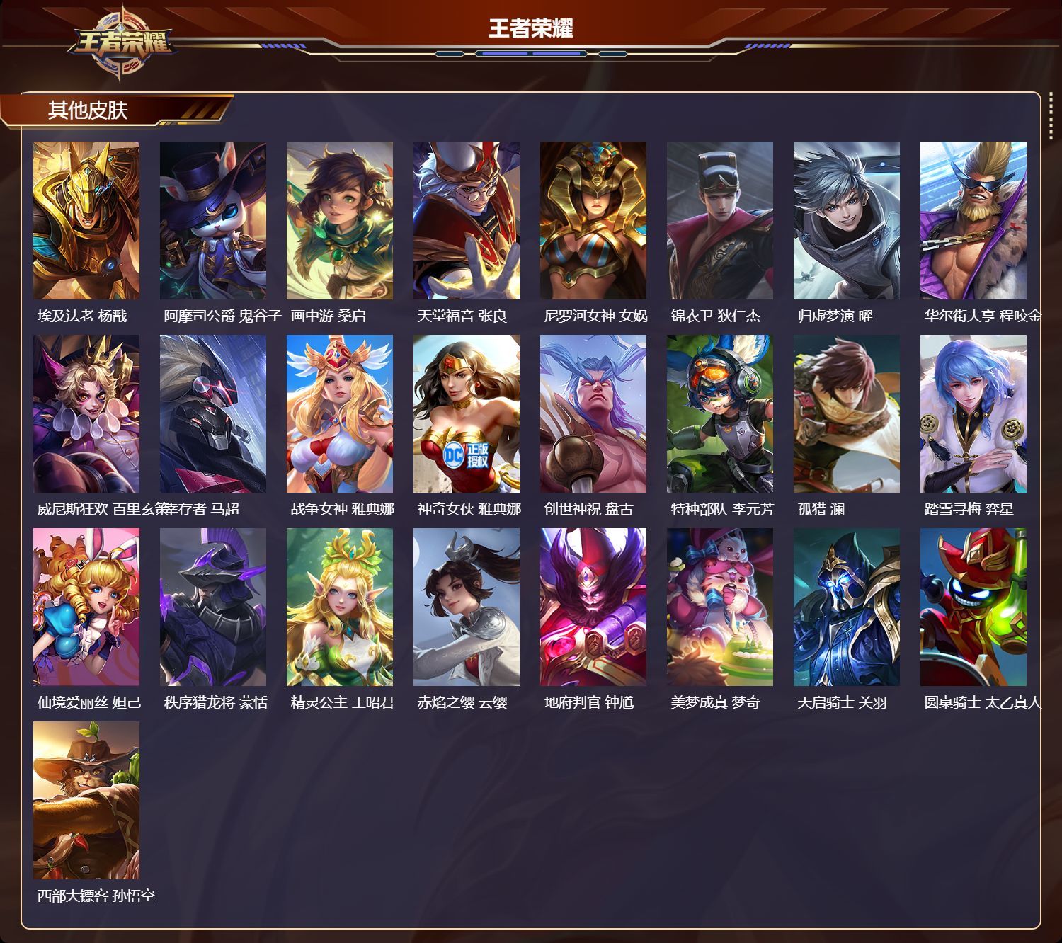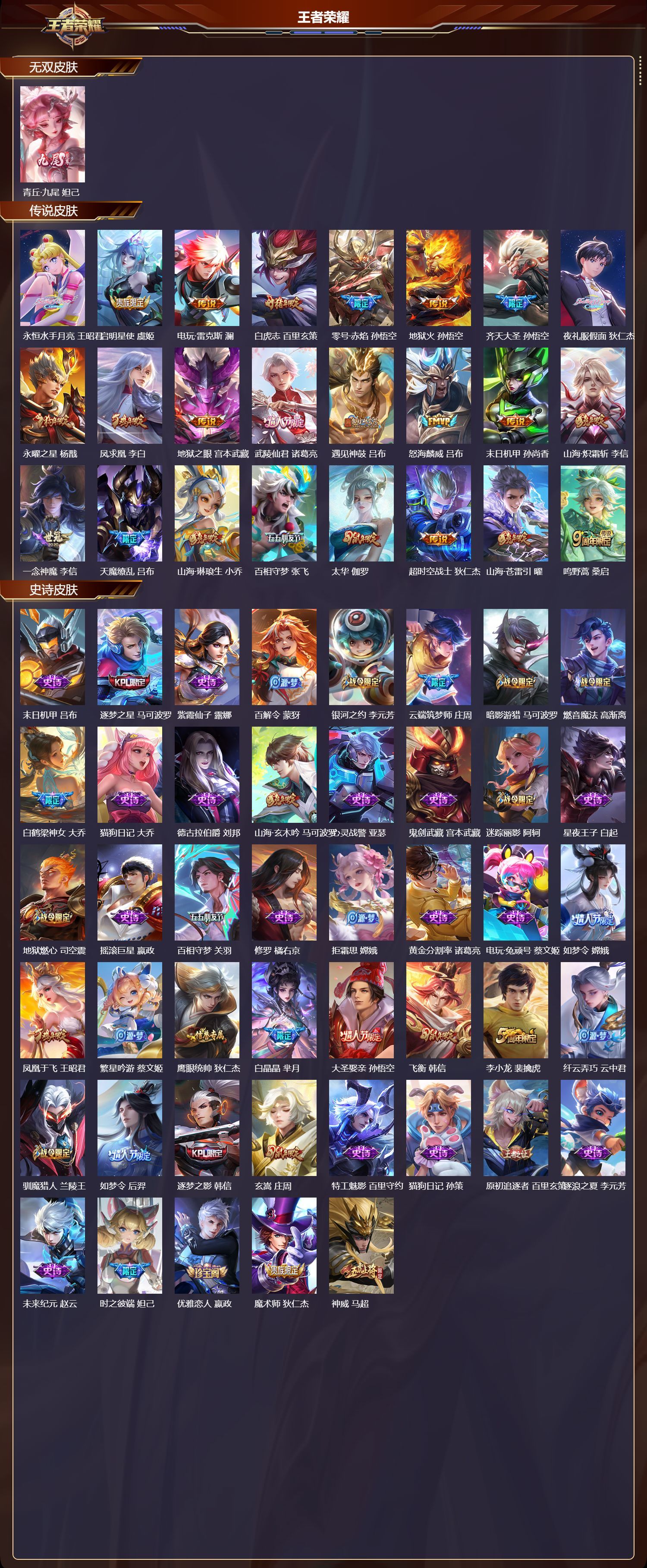 可二次实名【1 无双皮肤】青丘·九尾 妲己【24 传说皮肤】