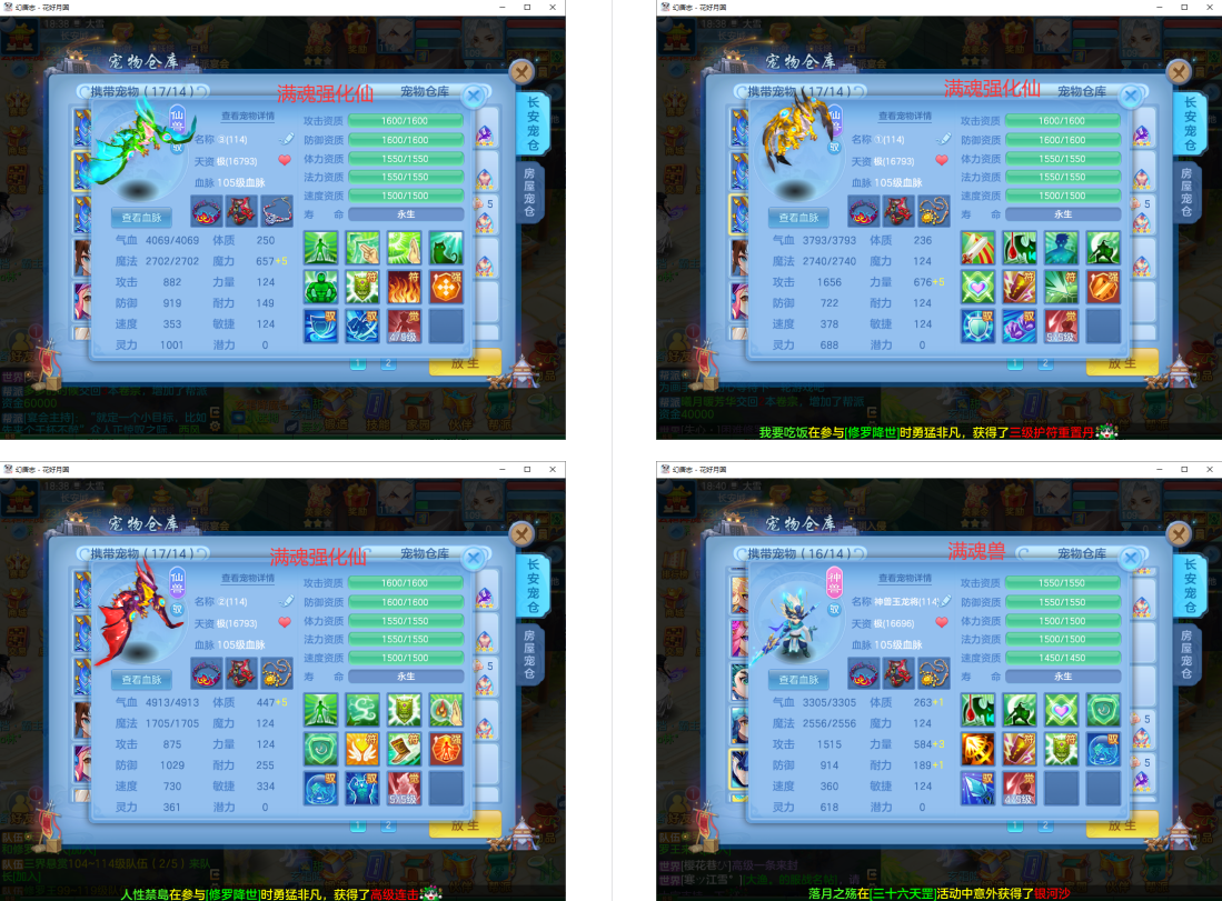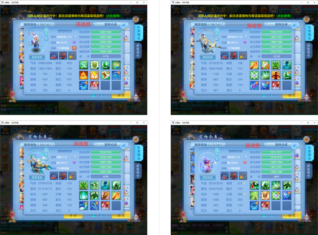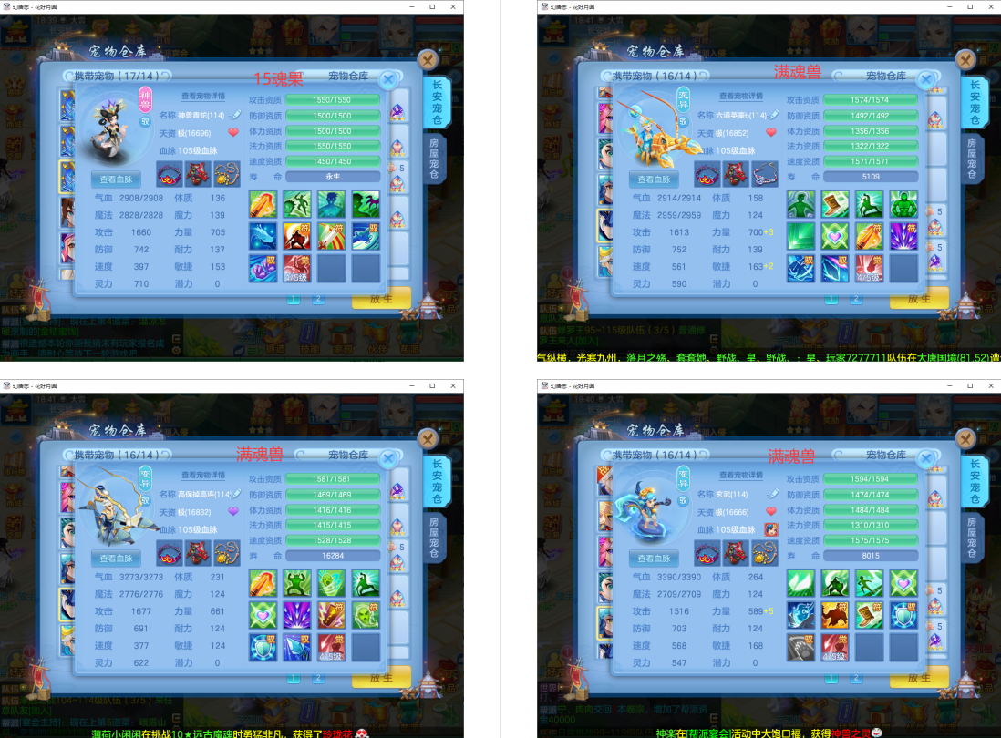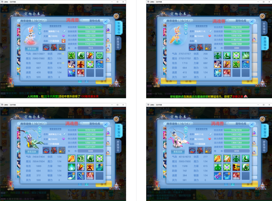 3满魂强化仙兽+2神兽(玉龙满魂+蛇),16个6技能多特殊5(总19满魂),18红9黄8专属血脉,19个宝宝皮肤