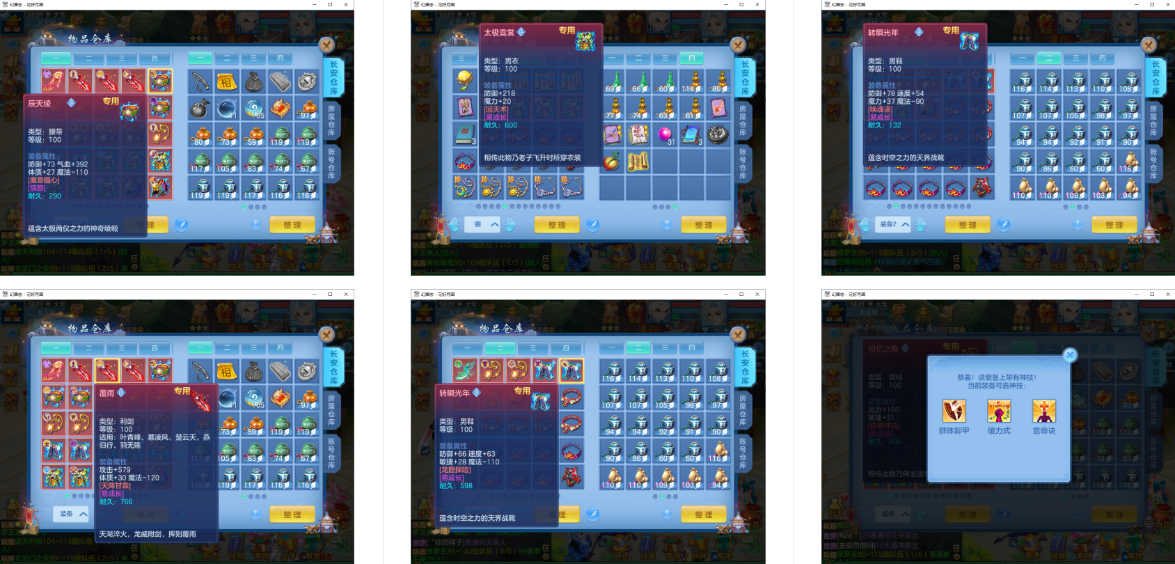 6件13段,易成长,神器腰带指挥/愤怒,3满魂强化仙兽+2神兽(玉龙满魂+蛇),16个6技能多特殊5(总19满魂),18红9黄8专属血脉,19个宝宝皮肤,高级坐骑+海景房,仓库还有很多可转职业装备,333329成就