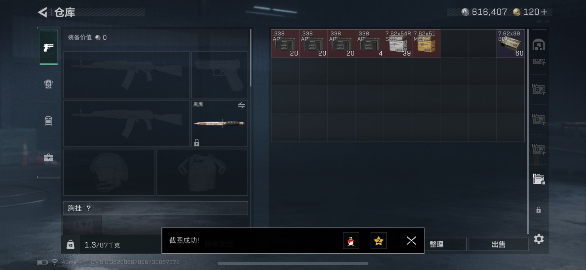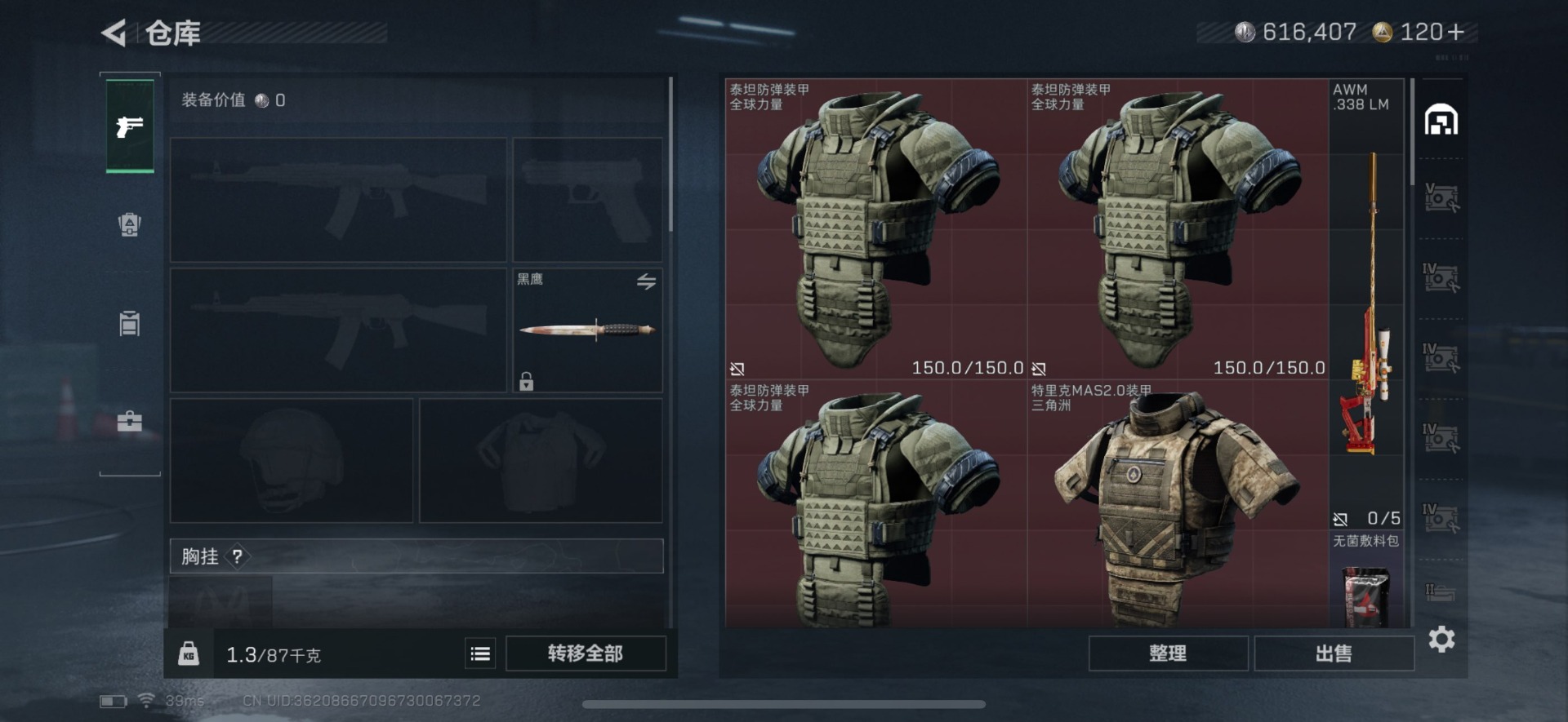 总资产:147.3M 1干员外观 12传说枪械 哈夫币:616.407K 可二次 可修改实名