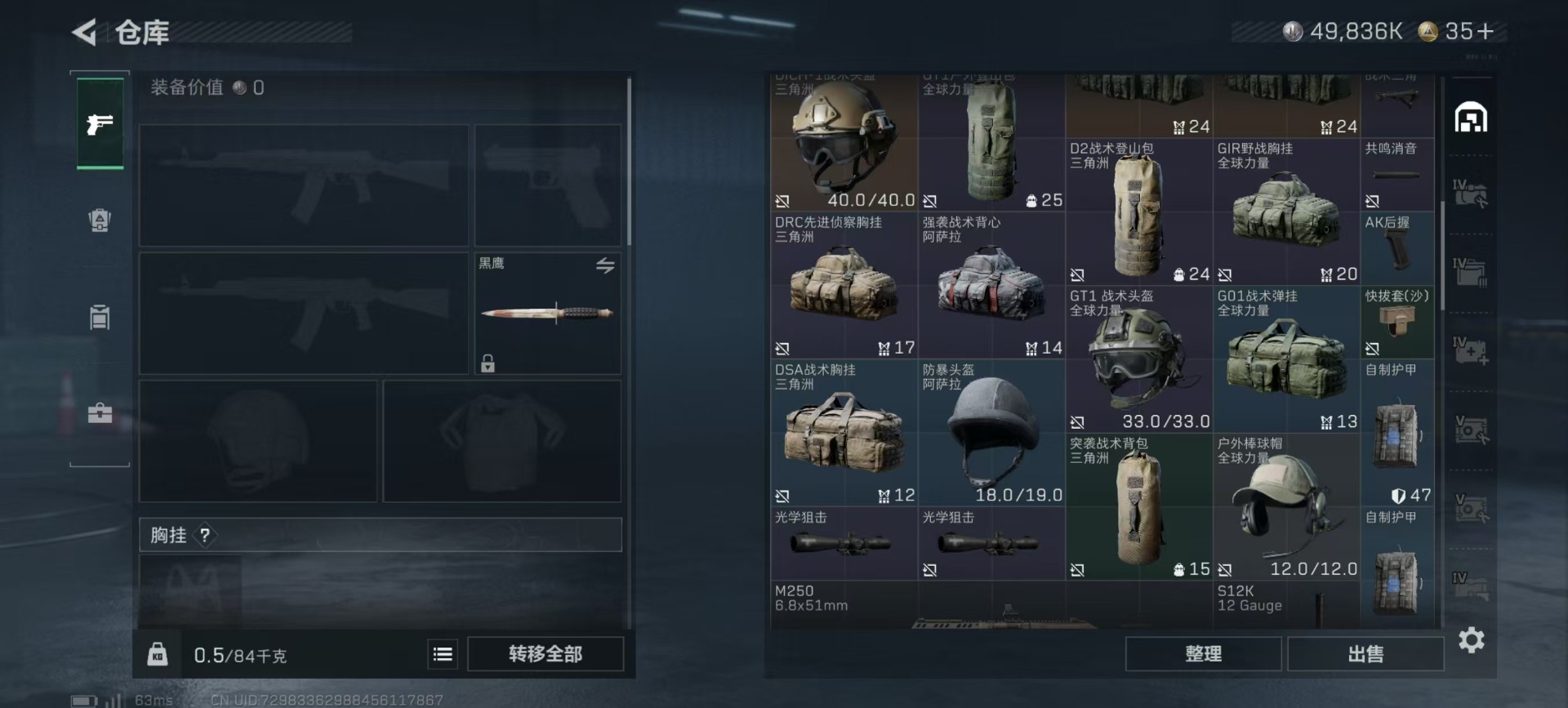 总资产:140.7M 1干员外观 8传说枪械 哈夫币:49.836K 可二次 可修改实名