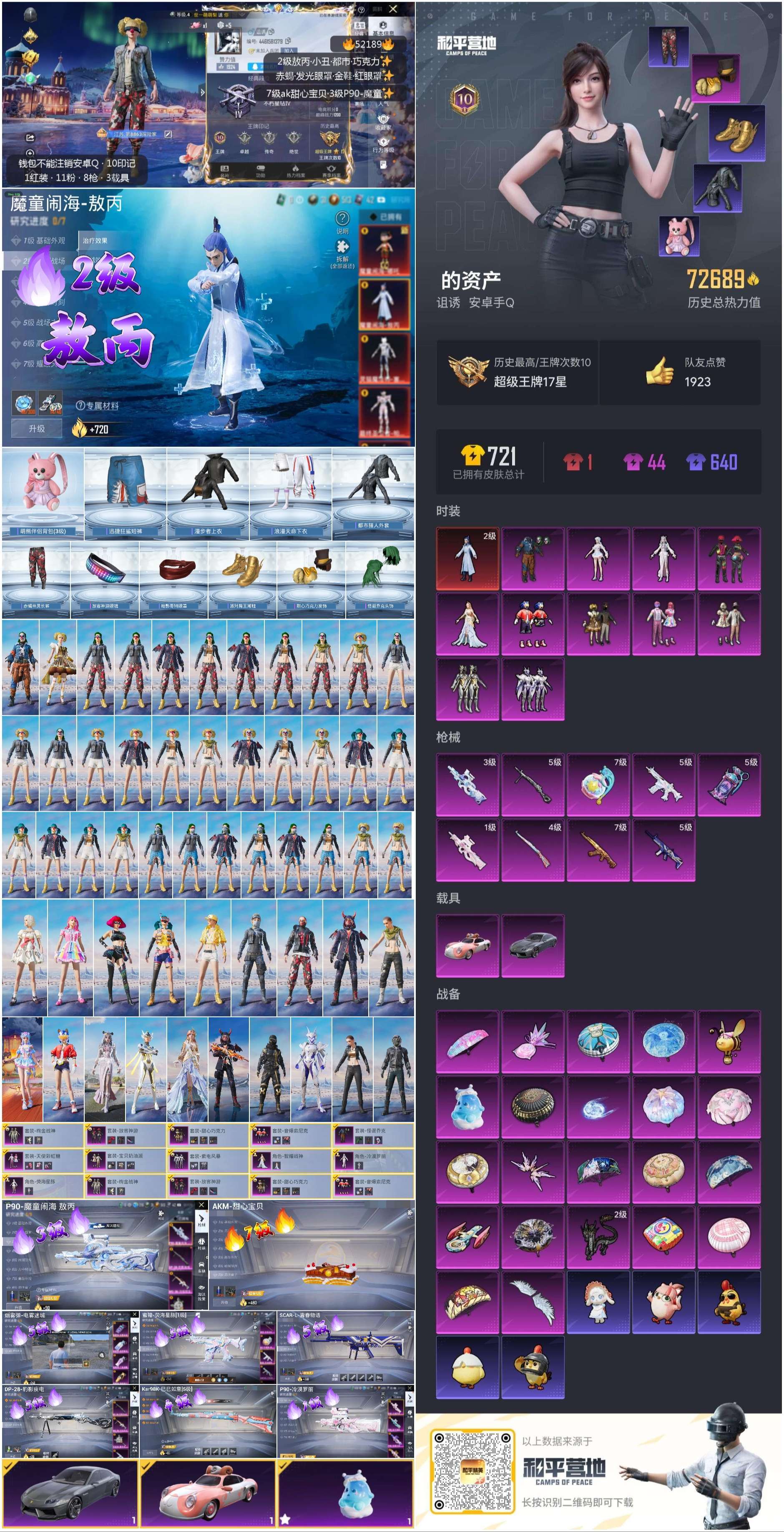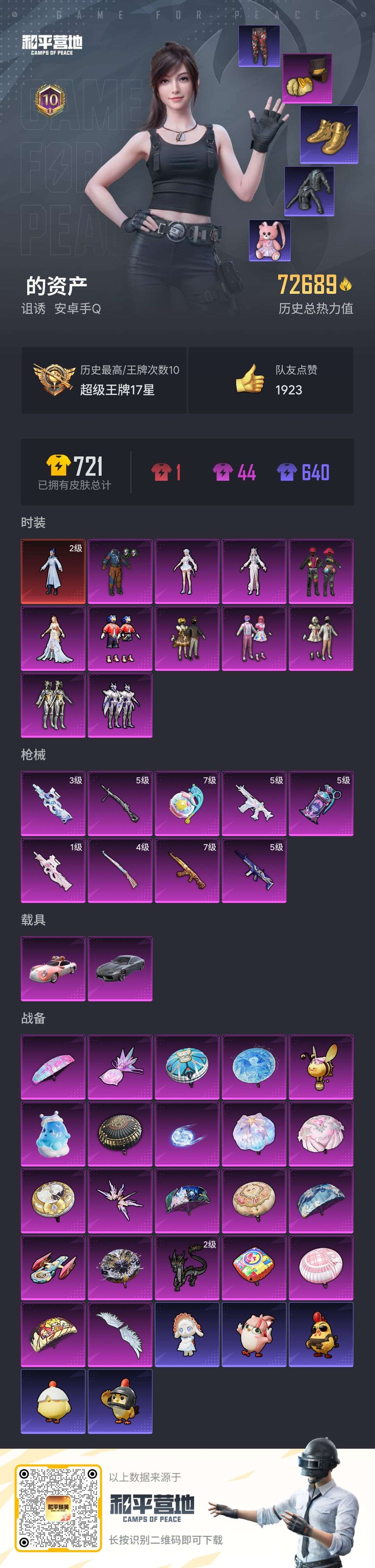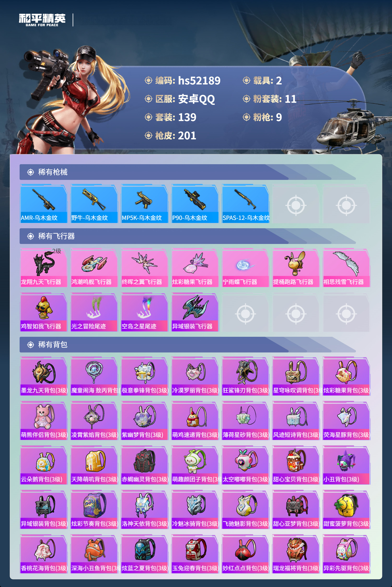 hs52189 安卓手Q-10王牌印记-1红装-11粉装-9特效枪-2载具-热力值-139