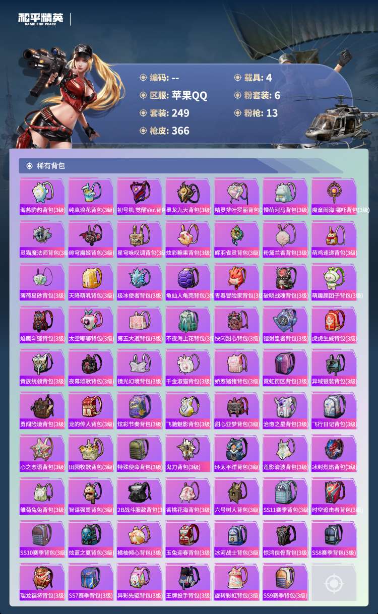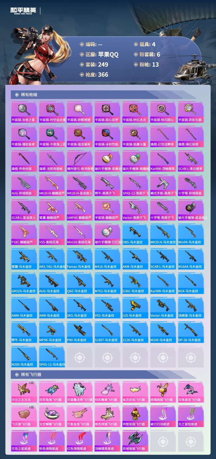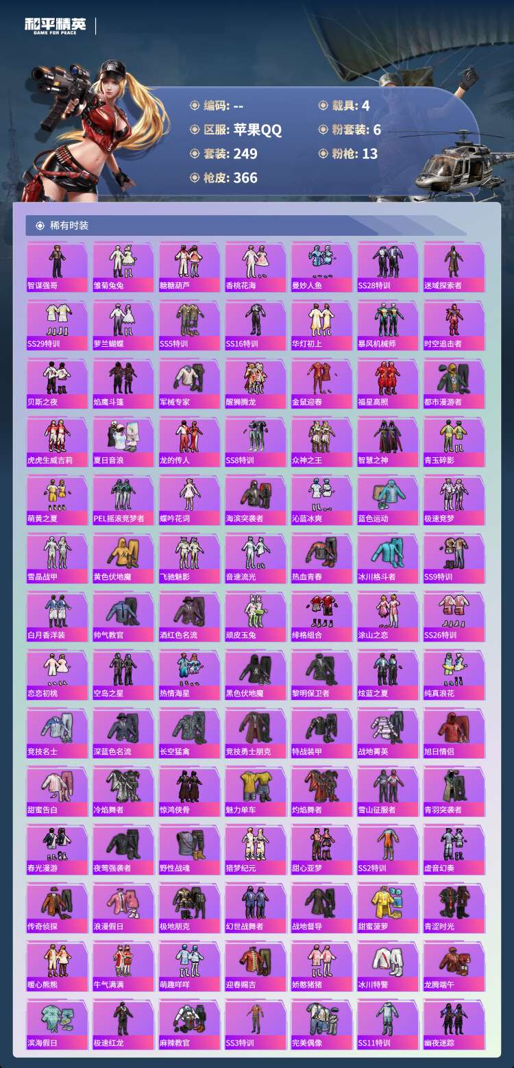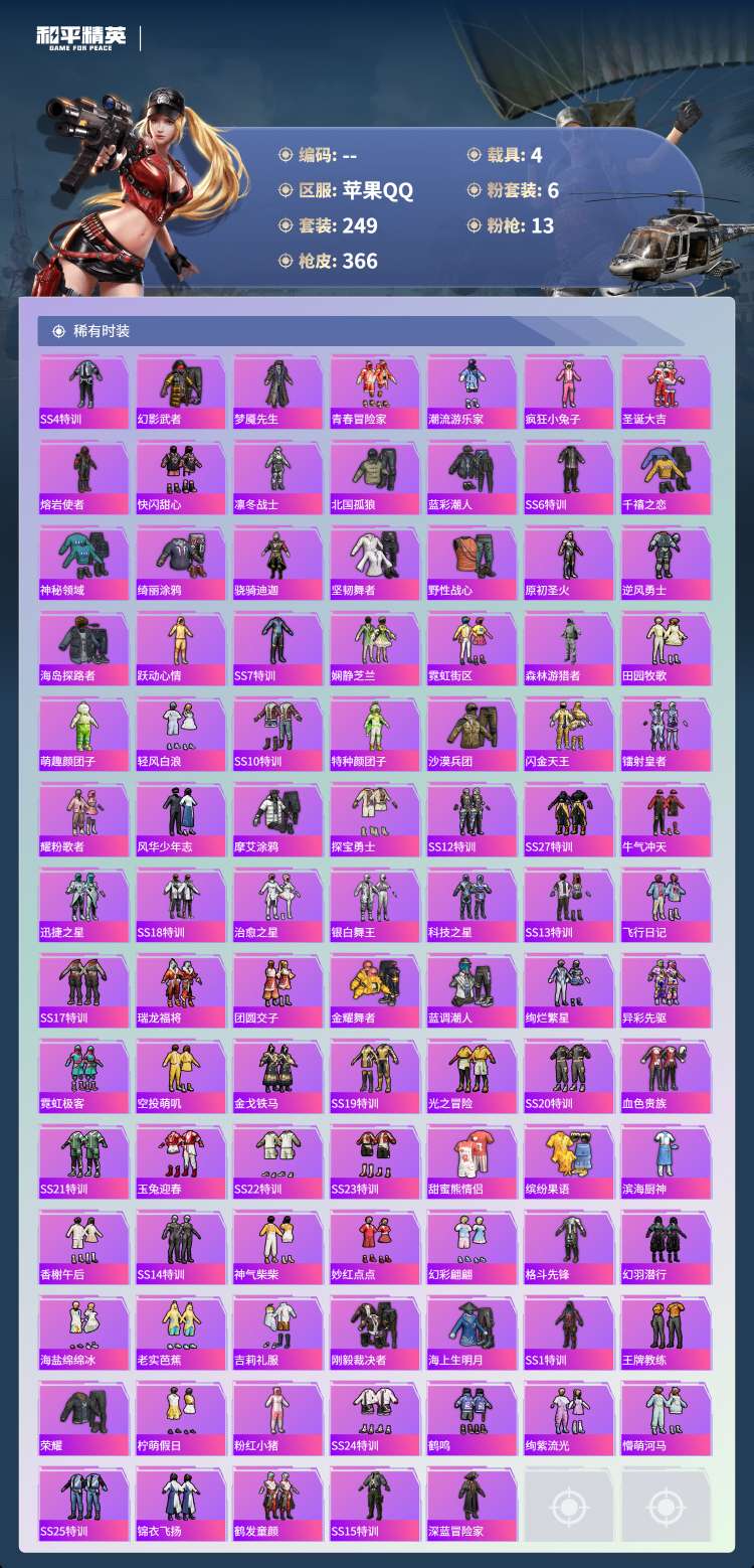 hs49880 苹果手Q-23王牌印记-1红装-6粉装-13特效枪-4载具-热力值-24