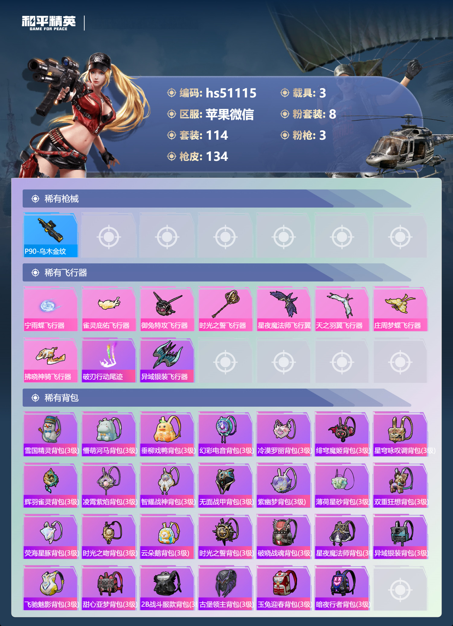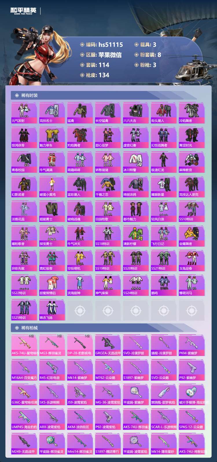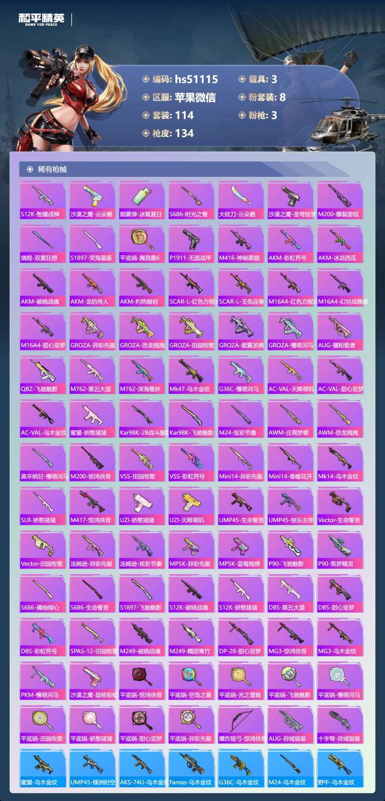 hs51115 苹果v-8王牌印记-1红装-8粉装-3特效枪-3载具-热力值-114套装