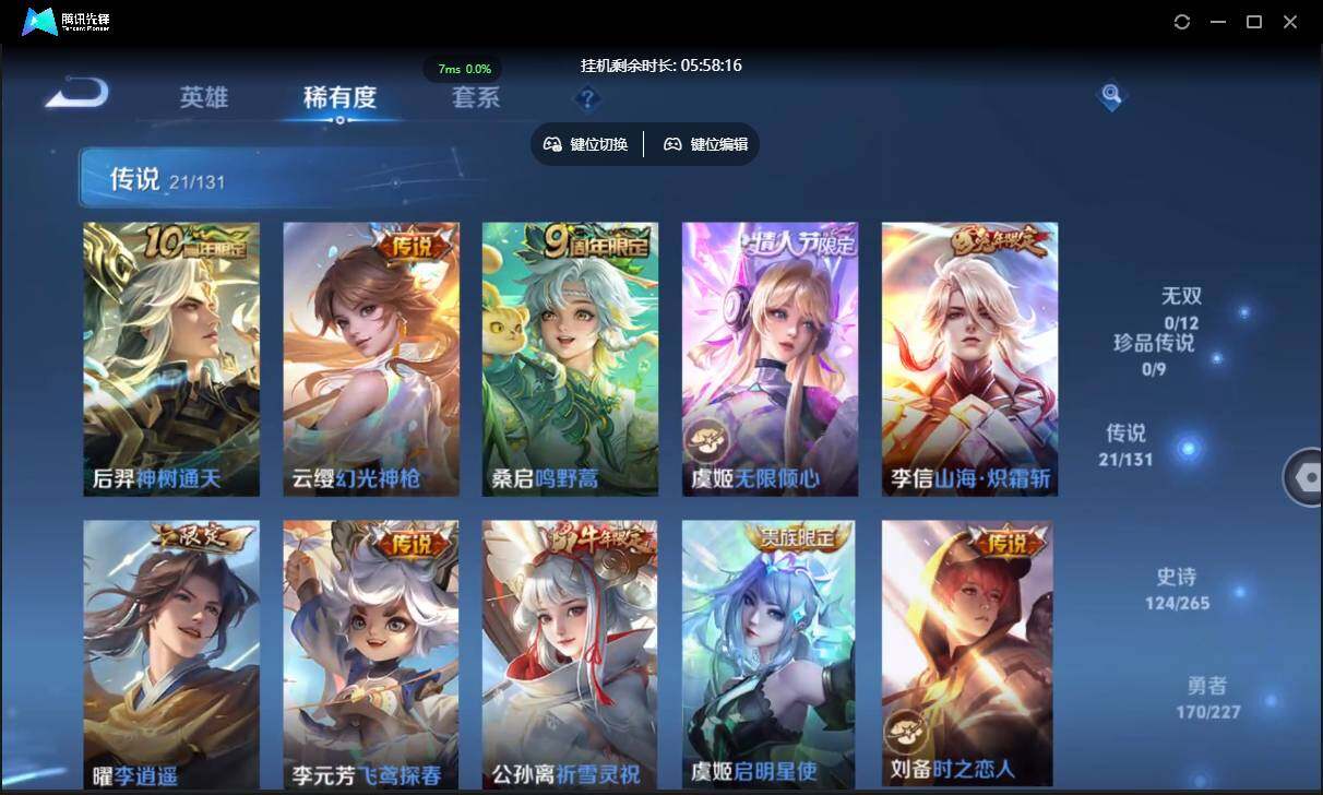 安卓QQ-5典藏-21传说-400皮肤-128英雄-绝世王者