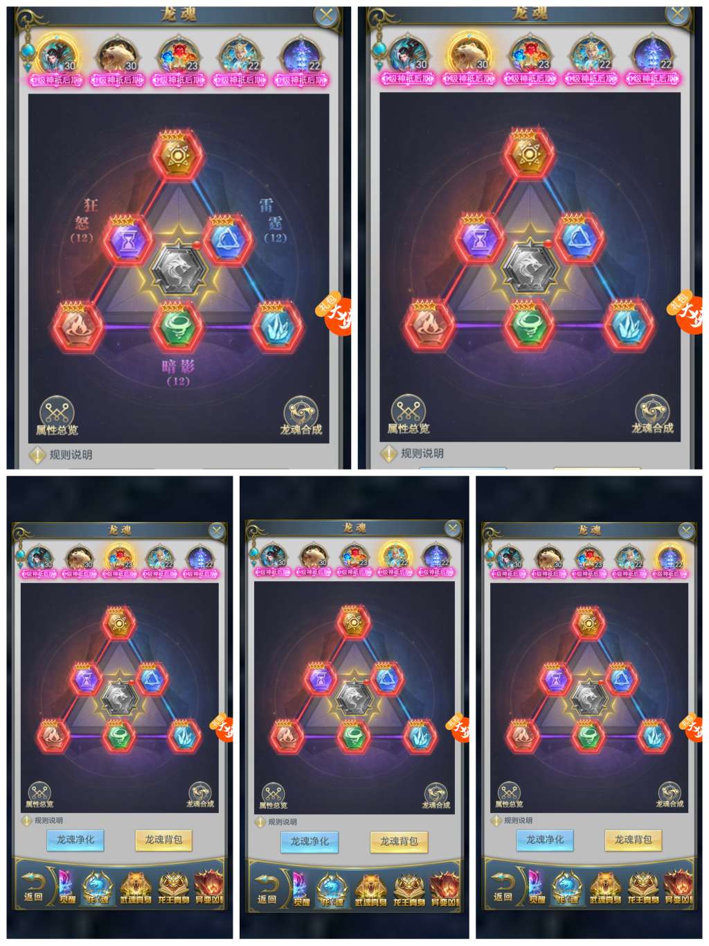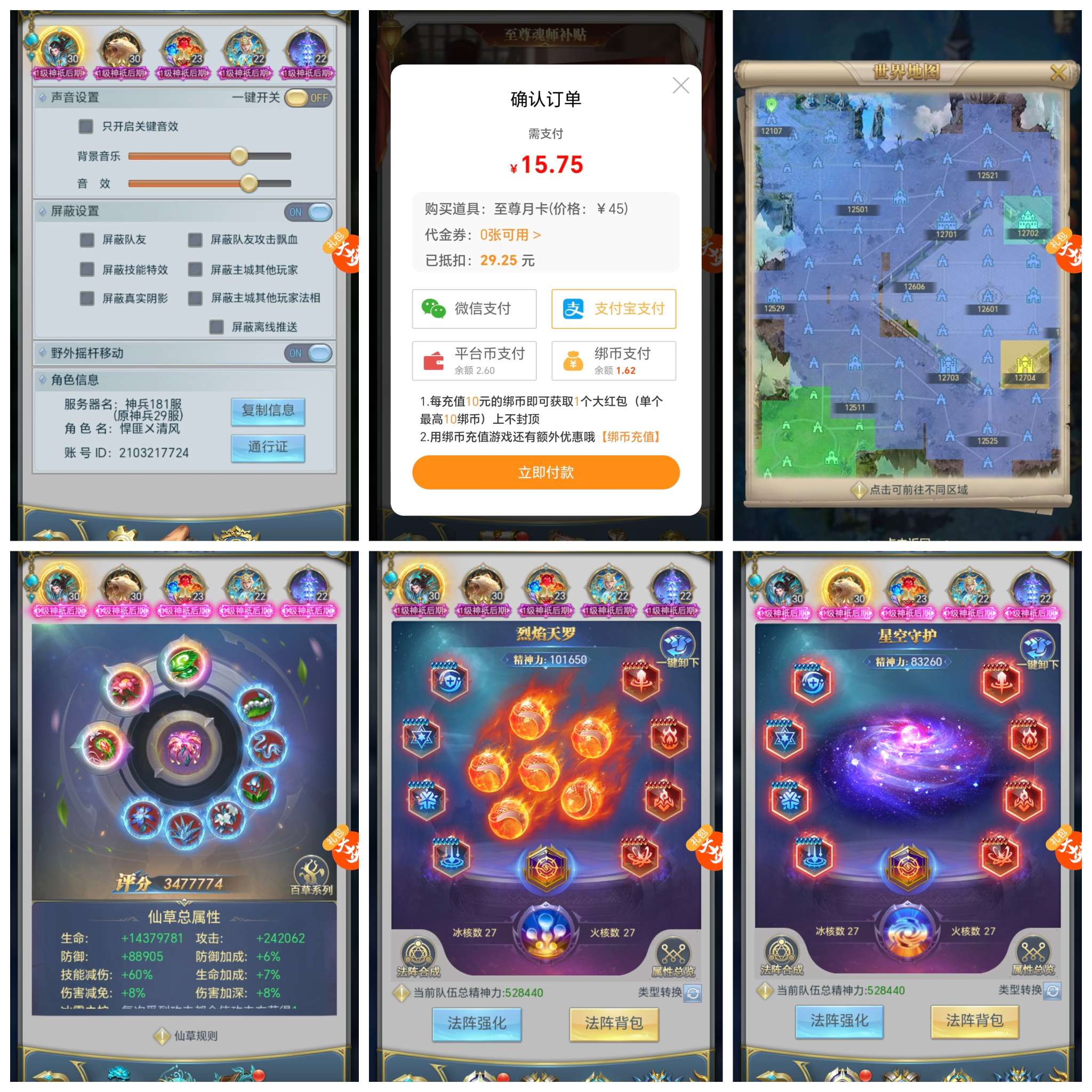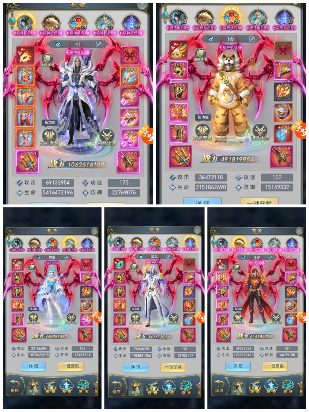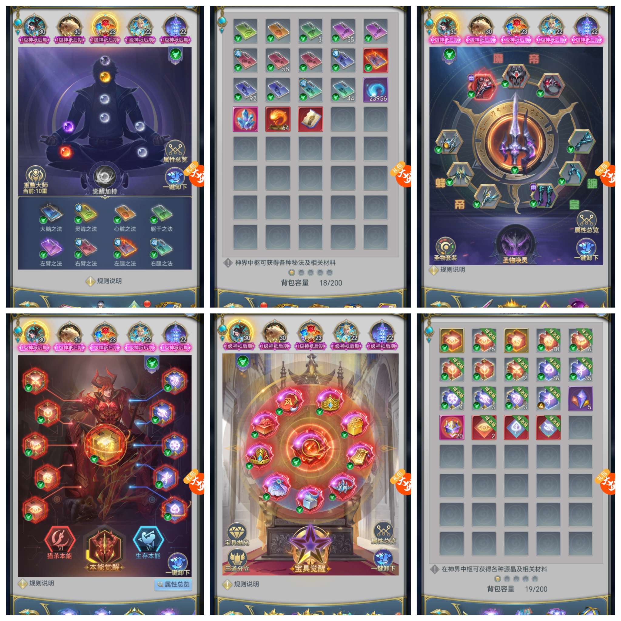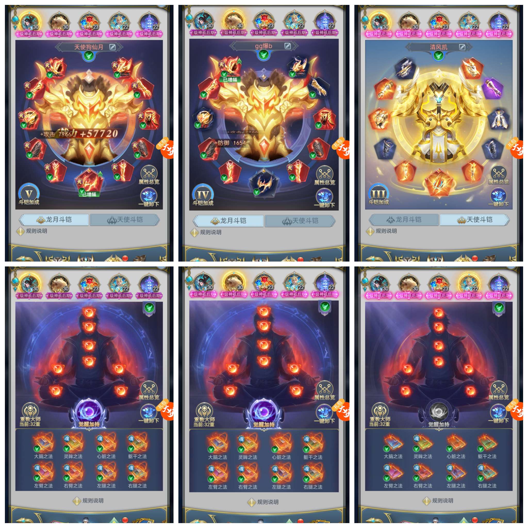 三神套,1彩4红骨,自助3.2折,两套绝魂导器,一套草皇,满真身龙魂,圣纹三套,中枢装备多,便宜出