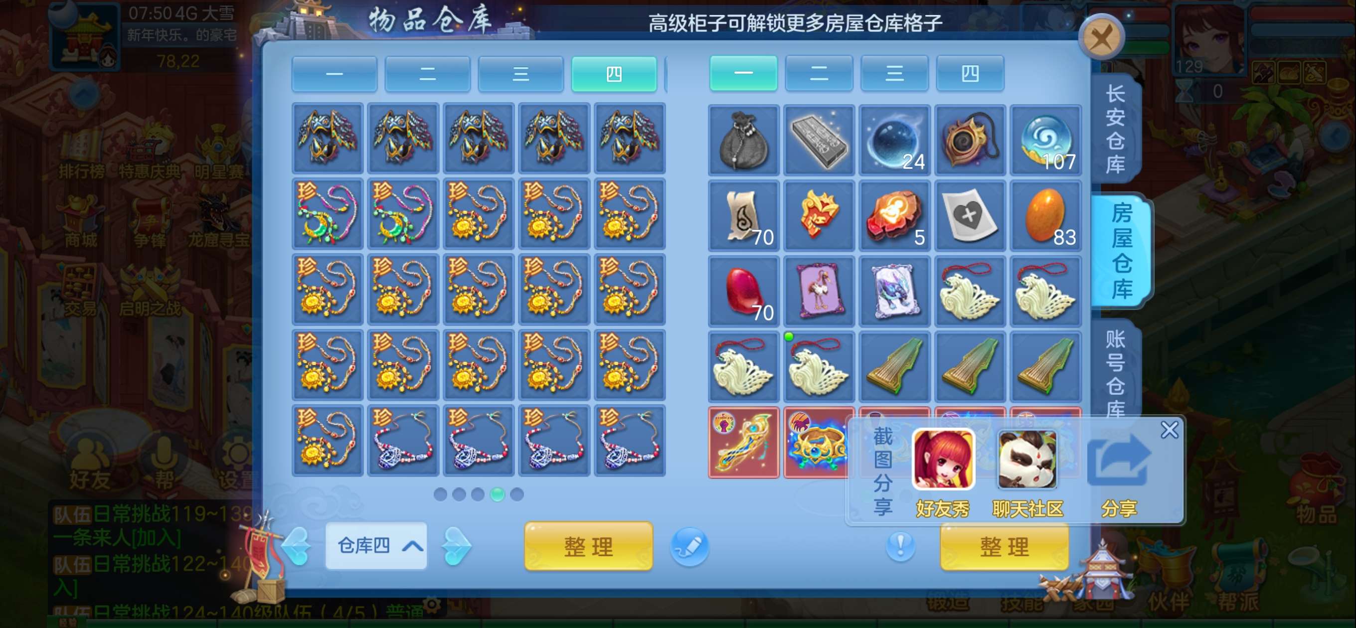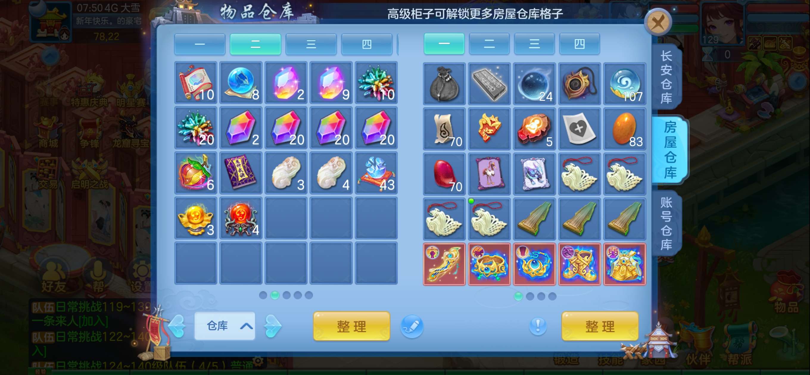 银子330多万,神兽丹65个,珍兽71个头像卷高级坐骑车兽魂果50,各种元宵,仓库各种资源