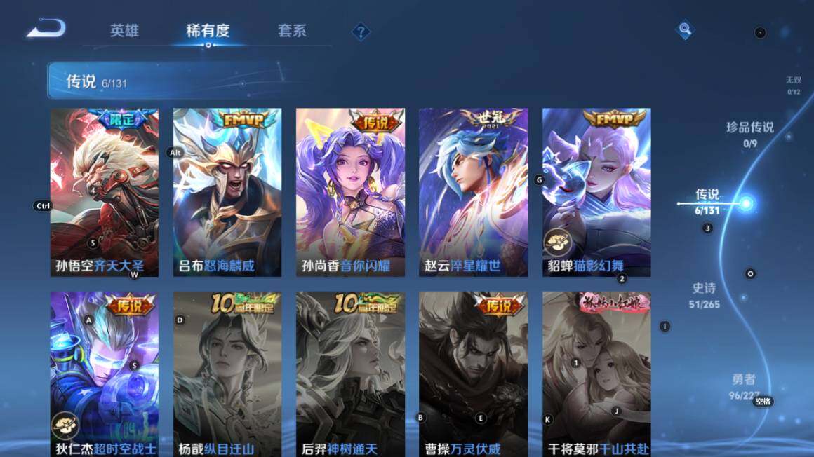 2星传说,5按键 安卓Q-V7-126英雄-195皮肤-6传说-51史诗【英