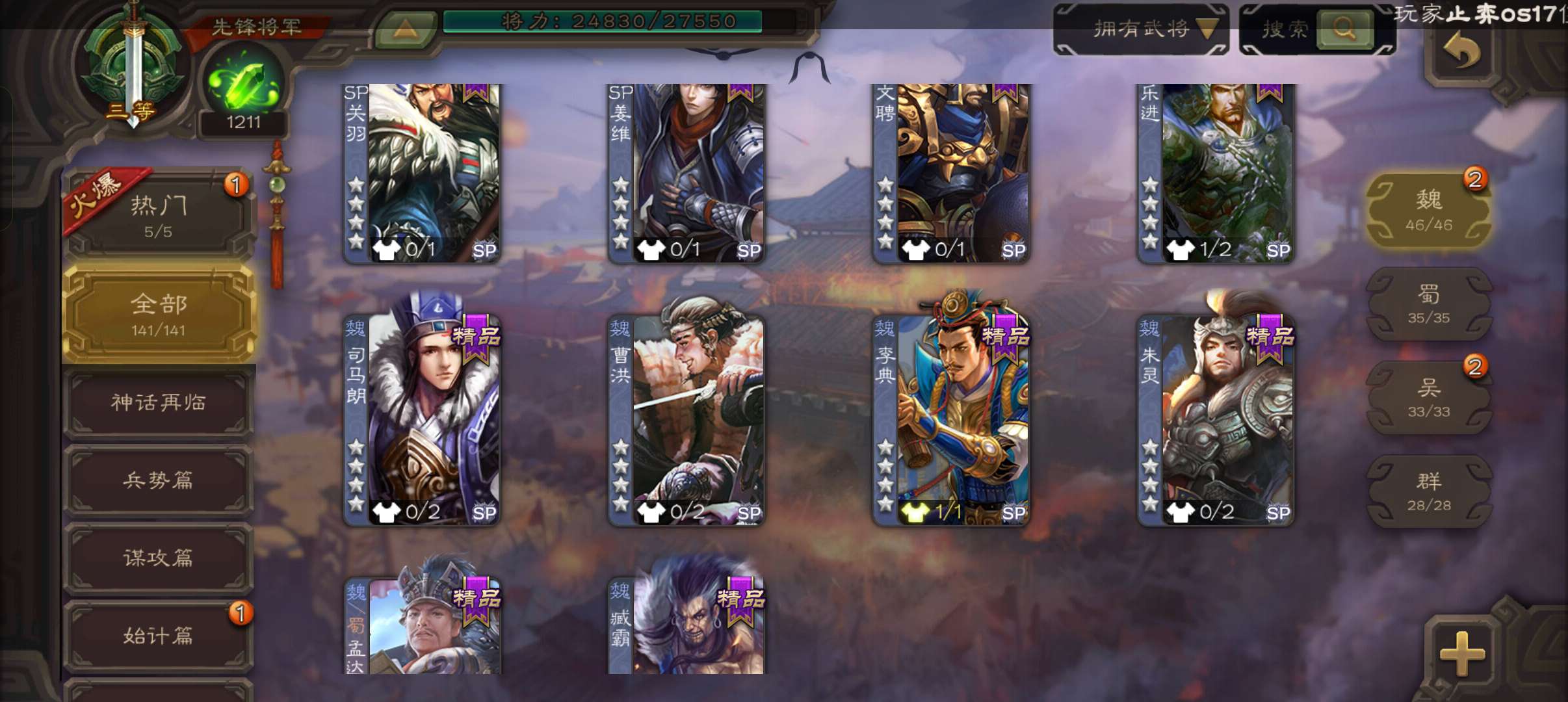 史诗武将数量: