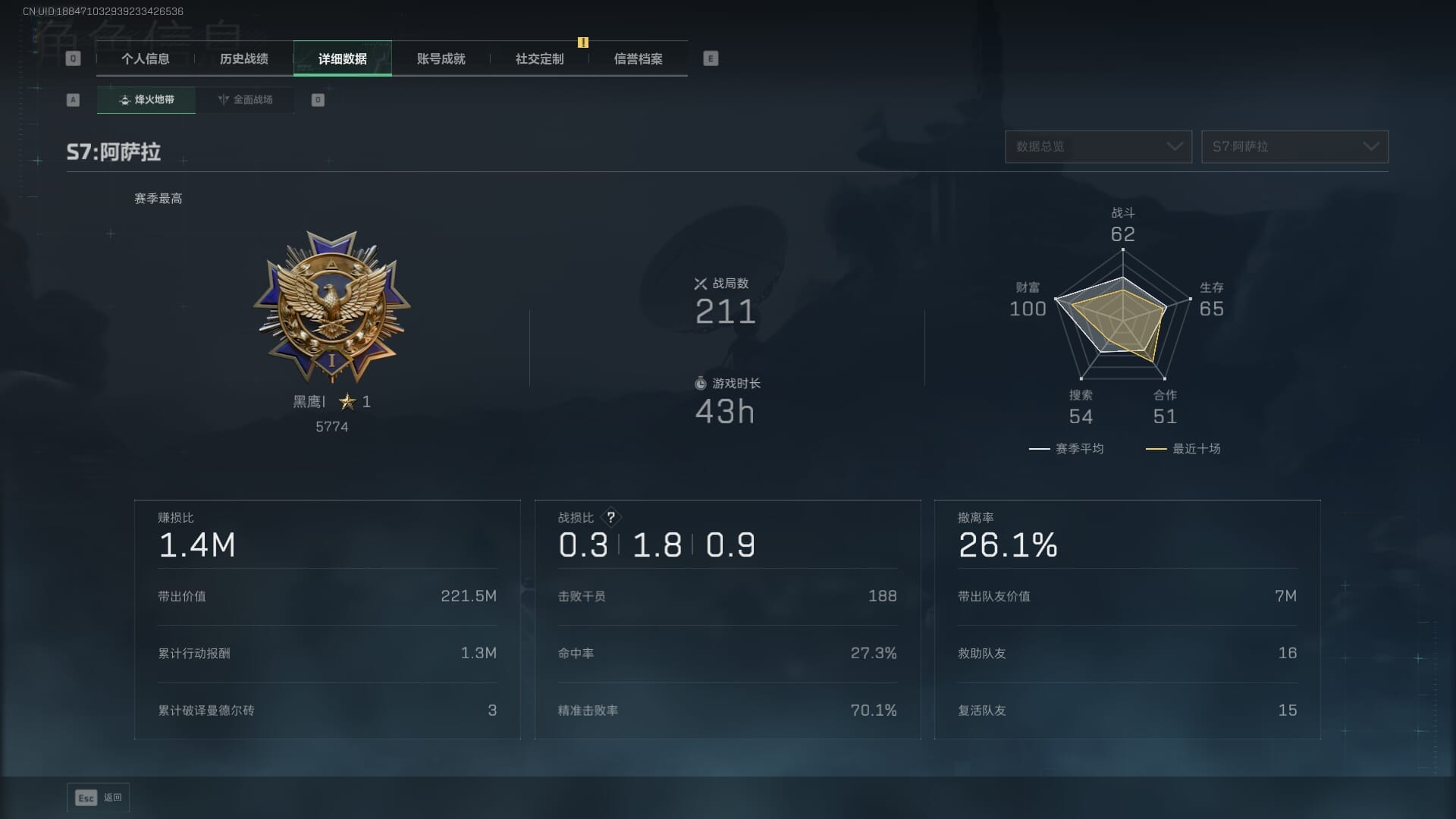 D10877/QQ区/可二次/钱包注销/【总资产:185.6M+哈夫币:376W+近战武器-北极星+