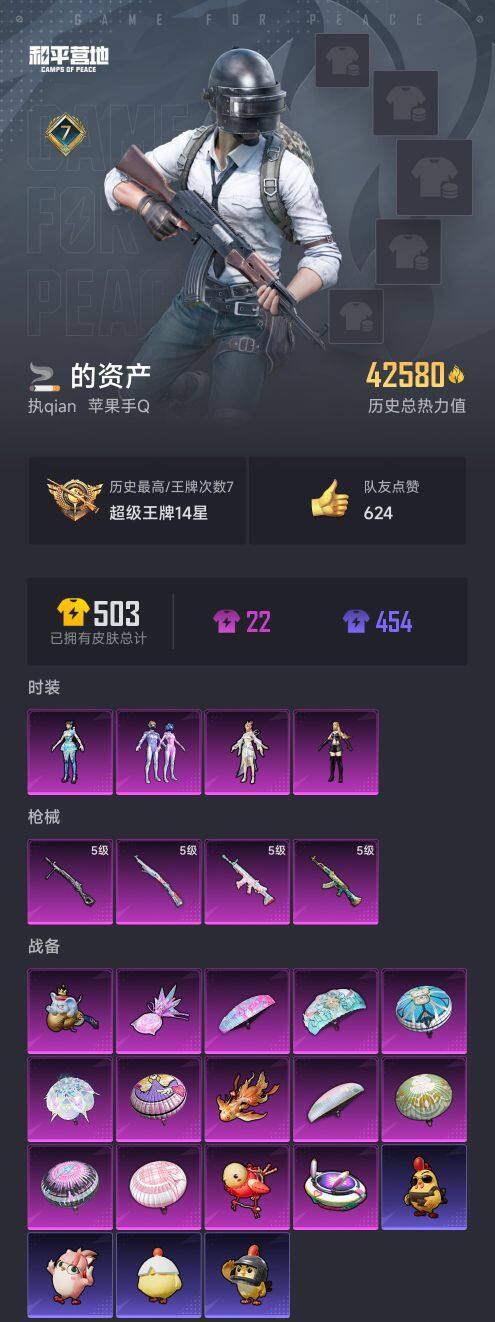 【AZH1789】苹果 手Q【梦幻火箭深海小丑鱼】4粉装-4特效枪-0载具-5粉色飞行器-42580热力值-7王牌印记-89套装-156枪皮
