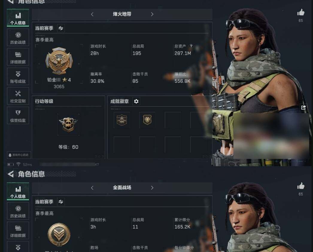 【个人信息】战场等级:37 军士长,行动等级:60 铂金