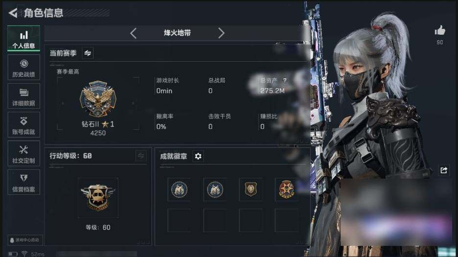 【个人信息】战场等级:50 军士长,行动等级:60 钻石