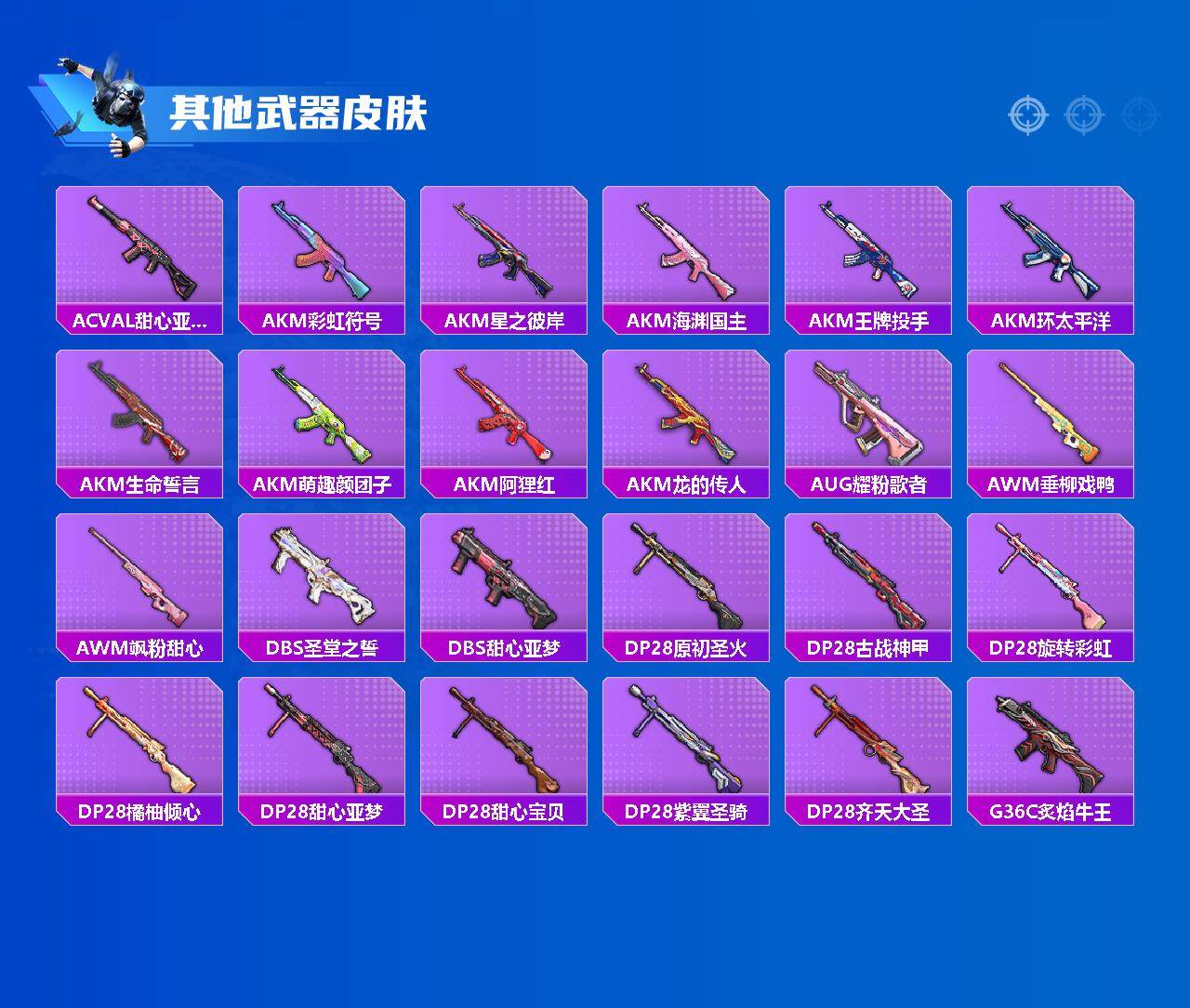 【6119】12粉装-7特效枪-1载具-56114热力值-11印记-110套装-165枪皮【优质套装】:梦幻火箭