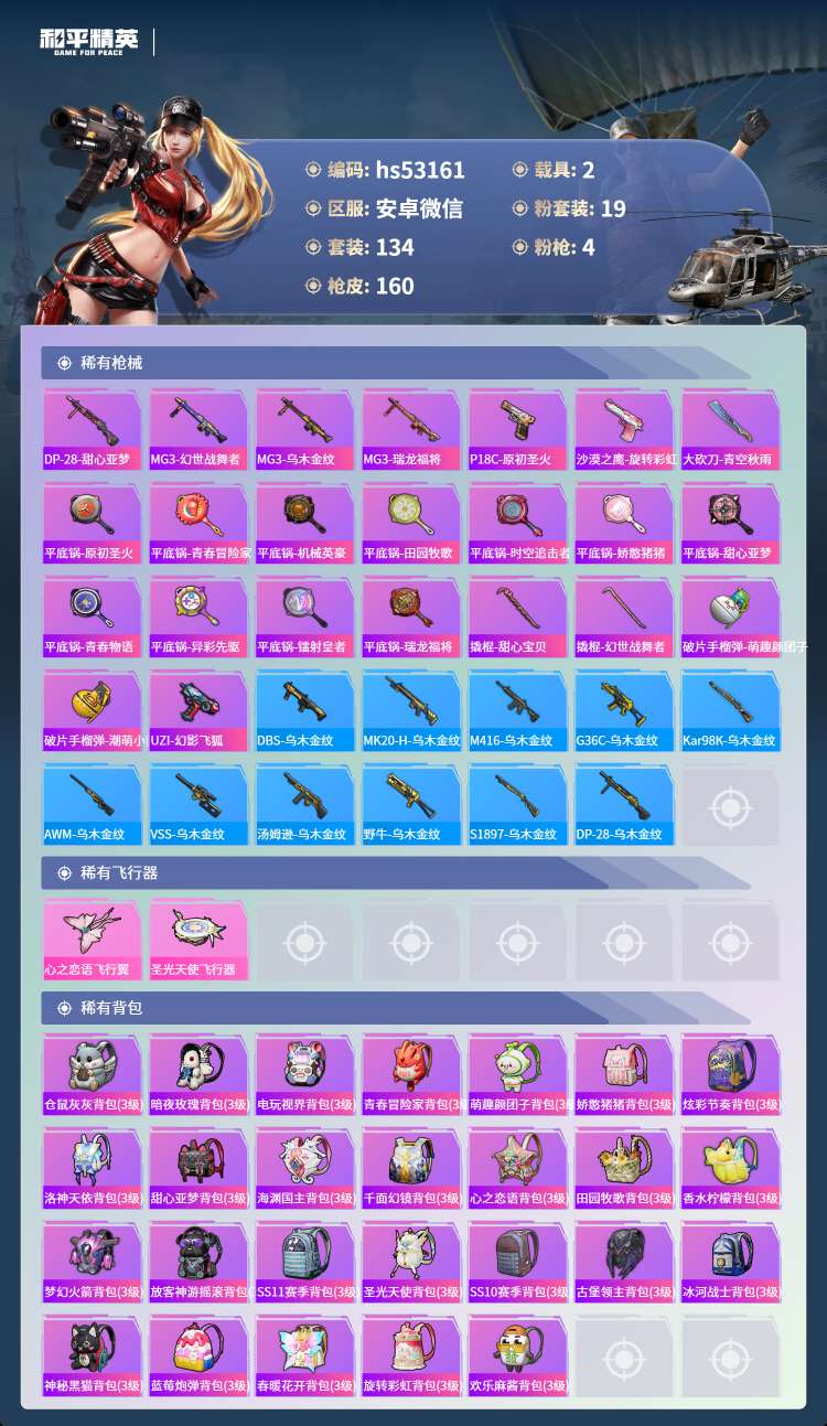 hs53161 安卓微-2王牌印记-19粉装-4特效枪-2载具-60693热力值-134套装-16