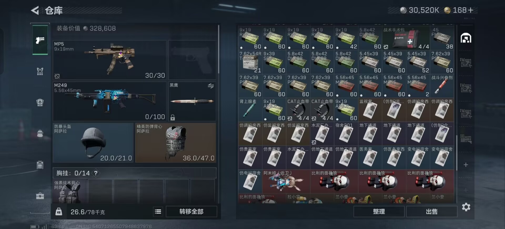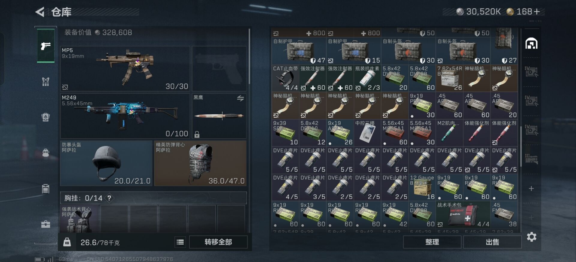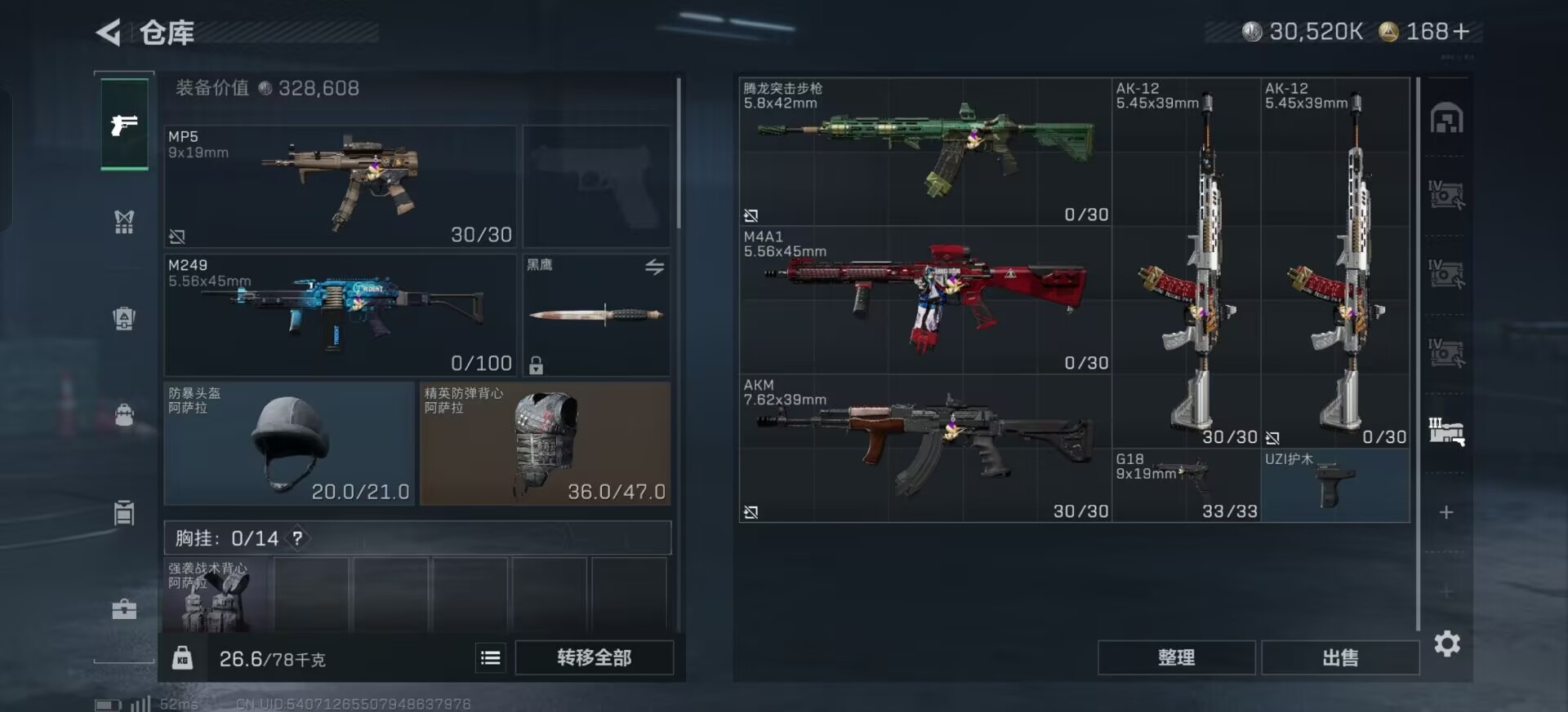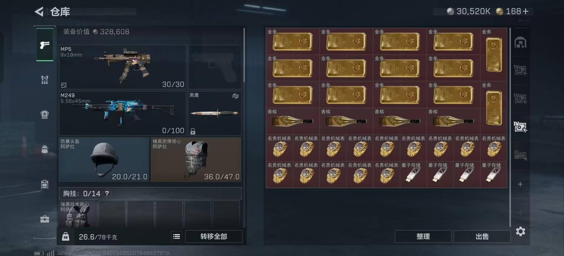 总资产:95.9M 1干员外观 11传说枪械 哈夫币:30.520K 可二次 可修改实名