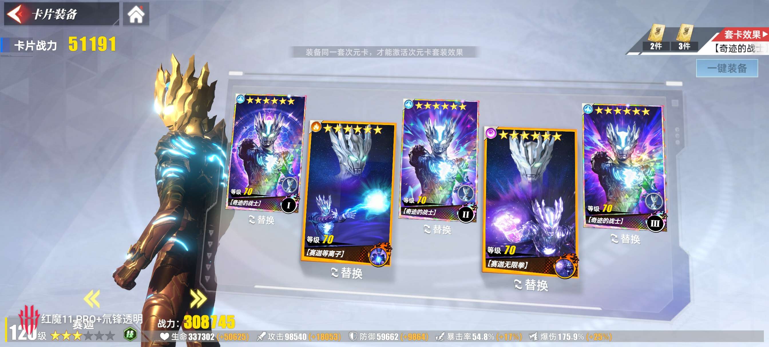 四套闪卡。满神器战力2536万。号里3w1钻石,请看图